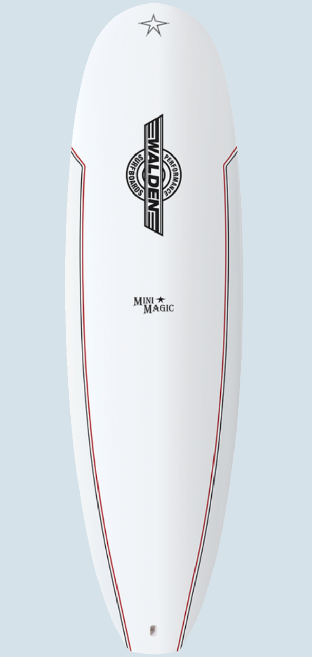 Das Walden MIni Magic ist der kleine Bruder des Magic Models und übernimmt dessen fundamentalen Designelemente - harte Rails, tiefes Singleconcave und eine extrem aggressive, "staged" Rockerlinie.