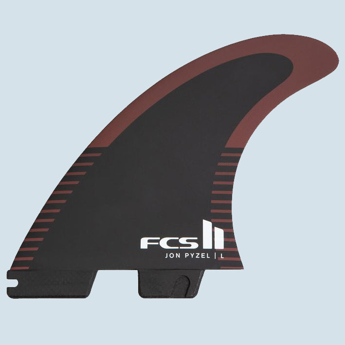 Das FCS Christenson PG Tri Quad Fin Set ist in zwei Größen erhältlich: M für schmale Round Pin Tails und/oder Surfer unter 80kg; L für breite Tails, Surfer ab 75kg aufwärts und solche, die ihre Finne hart durch Turns pushen.