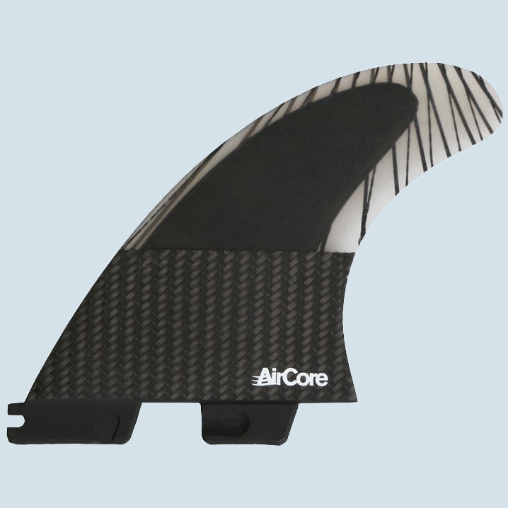 Performance Core Carbon (PCC) - Geglaste Finne mit Schaumkern und strategisch positionierten Carbon Inlays zur Optimierung des Flex Verhaltens. Steifer als PC Finnen und leichter als komplett geglaste PG Finnen. Sehr gut geeignet für kontrolliertes Surfen in kraftvollen Wellen und ideal für fortgeschrittene Surfer. Auch schwerere Surfer profitieren von der zusätzlichen Steifigkeit.