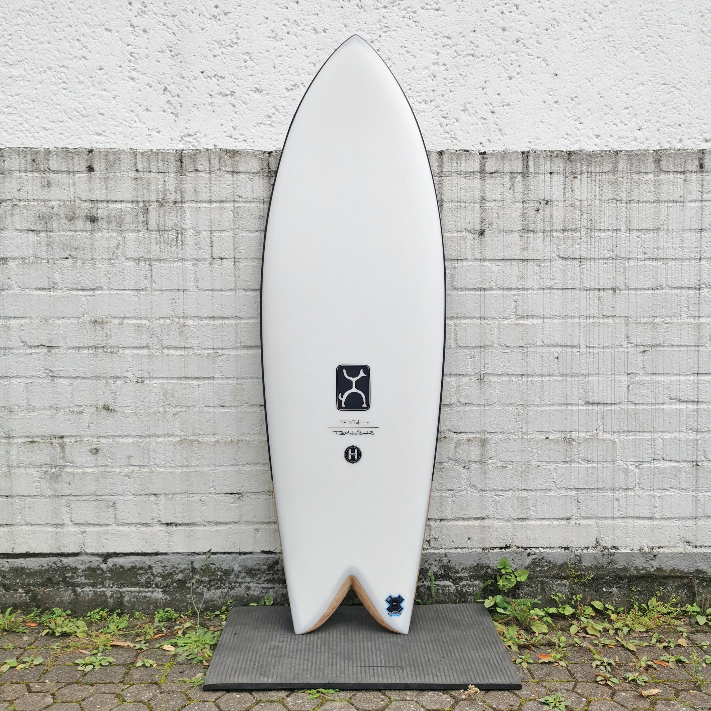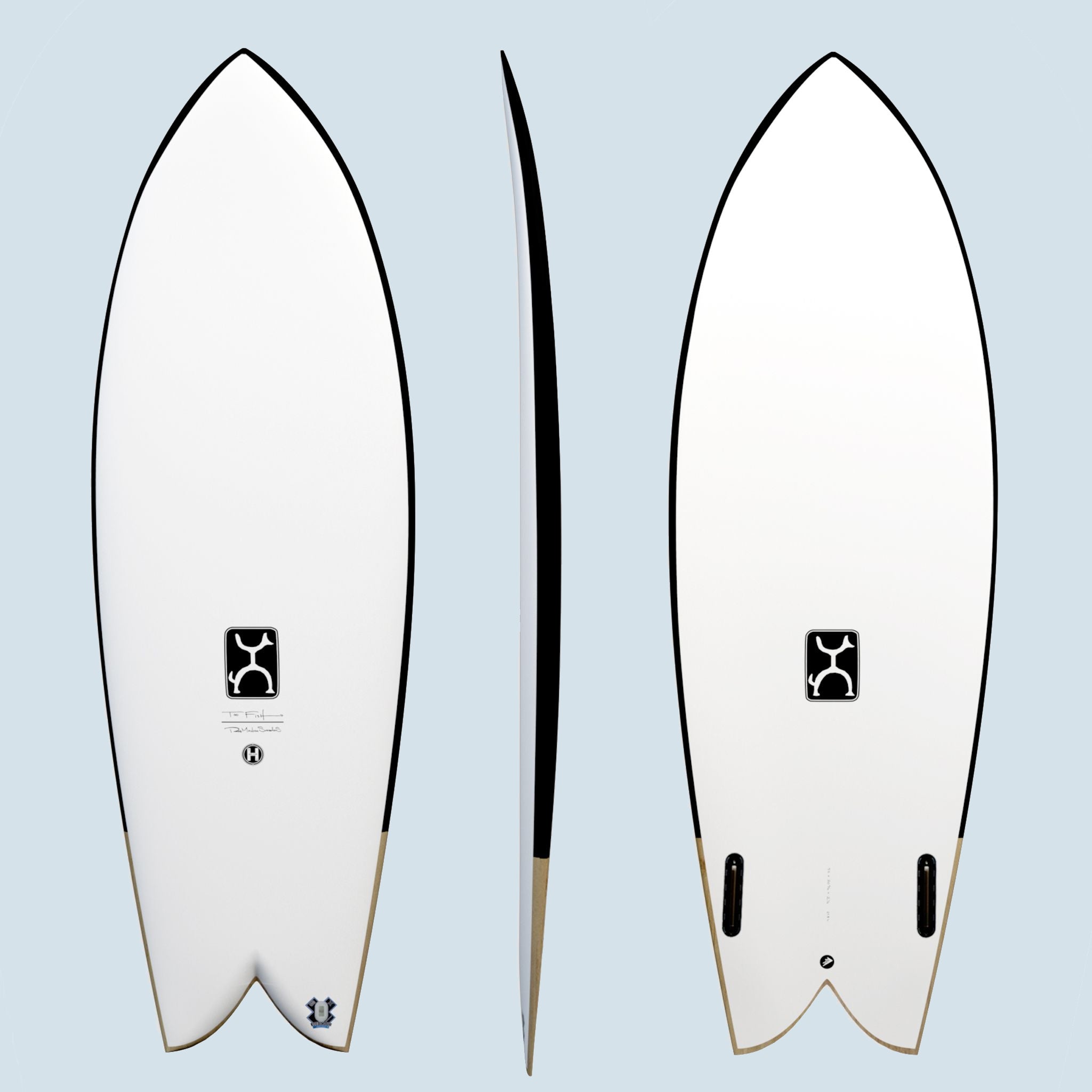 Der Too Fish ist ein Update des beliebten Go Fishs von Rob Machado. Die Bauweise wurde vom PU-inspirierten LFT hin zur lebhafteren und robusteren Helium Technologie geändert. In Sachen Plan Shape wurde deutlich mehr Kurve in die Outline durch mehr Breite am Wide Point gebracht und das radikale “Board eats Board”-Unterwasserschiff in ein tiefes Single Concave abgeändert. Letzteres sorgt für ähnlich viel Lift wie beim Go Fish, vereinfacht aber Railwechsel. Die elliptischere Outline sorgt für engere Turns und bessere Performance in der Wellen Pocket. Alles andere bleibt gleich: Reines Twin Fin Set up, sehr viel Volumen in der dicken Nose und flacher Rocker für viel Gleitfreude und Down the Line Speed, gekontert von einem sehr stark ausgedünnten, breiten Swallow Tail. Dieses wiederum ermöglicht kontrollierte radikale Turns auch bei hohen Geschwindigkeiten.
