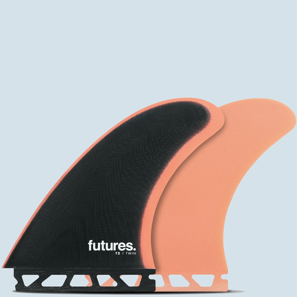Das Futures T2 Fiberglass Twin Fin Set ist ein aufrechtest Twin Fin Set für viel Drehfreudigkeit in modernen Fish Surfboards und performance lastigen Twin Fins. Für klassische, breite Swallow Tail empfehlen wir Finnen mit mehr Rake und Base wie zum Beispiel die Futures K2 oder BMT.