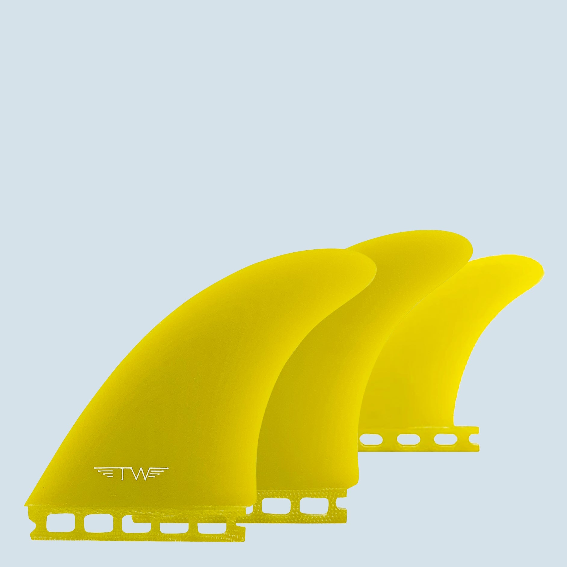 Available in either Honeycomb (black) or fiberglass (yellow), the Tyler Warren Twin and Trailer was designed for maximum down the line speed and smooth rail-to-rail surfing. Created with fish shapes like winged swallows in mind, it can be used in for a variety of boards from twins to thrusters. Used in a thruster it makes it a lot looser for those small, mushy days. According to Tyler, "It should provide plenty of grip for you to rip!" Ride on man.