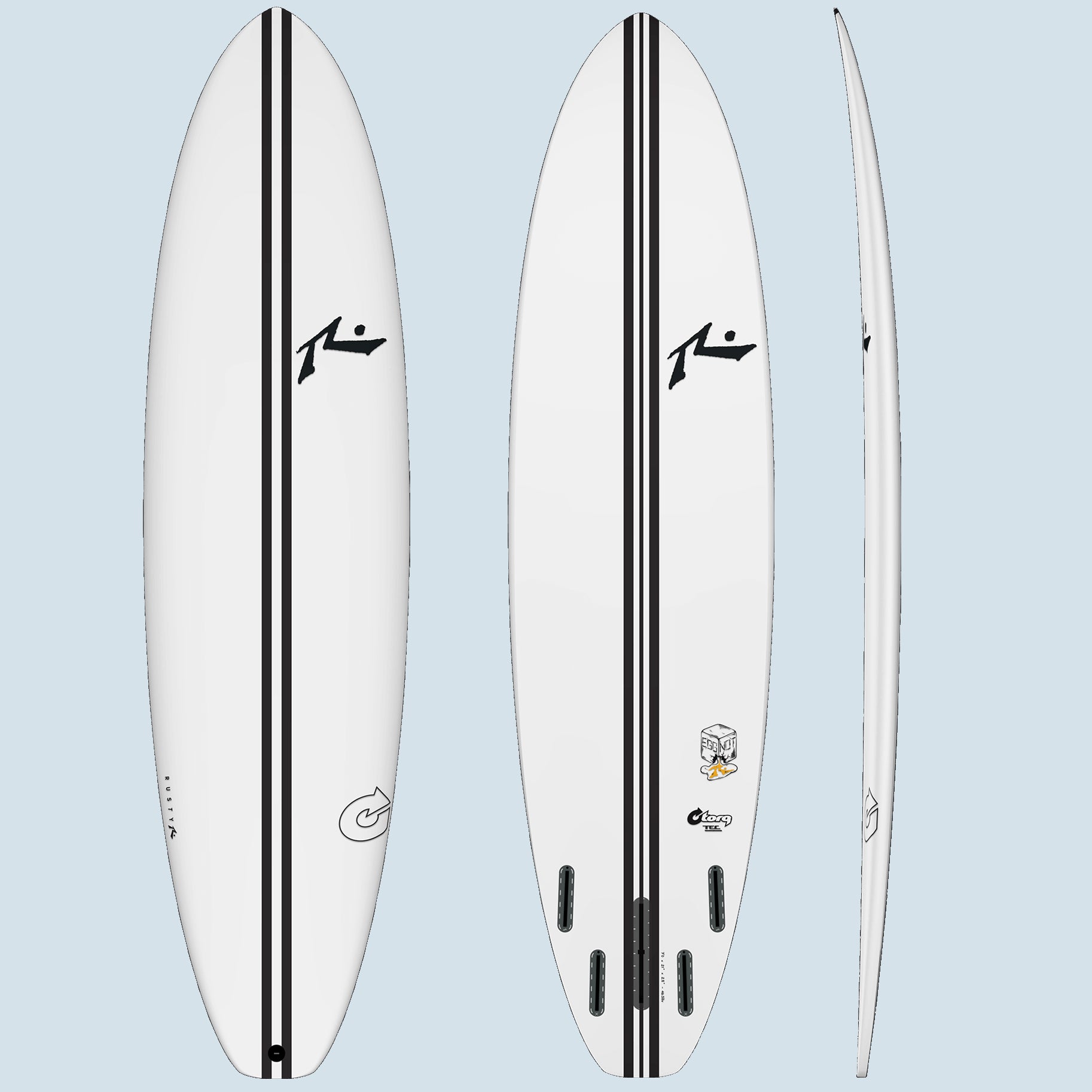 Das Rusty Egg Not ist ein Midlength Surfboard, das sowohl von der Dicke als auch der Outline im Nosebereich eher etwas “sparsamer” als der Durchschnitt daherkommt. Der Fokus liegt also etwas stärker auf Drehfreude und der Fähigkeit, enge Turns zu surfen als auf maximaler Gleitfreude und Nutzerfreundlichkeit (wobei die letzteren beiden Eigenschaften sowieso in jedem guten Midlength Shape grundlegend gegeben sind). Das 1+4 Fin Set up bietet von Single Fin über 1+2 bis hin zu Quad für jeden Geschmack und alle Bedingungen die passende Konfiguration an.