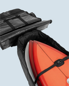 Natürlich ist auch das patentierte Hookup Systems von Db in das Bunker Board Bag integriert, sodass kleineres Reisegepäck, wie zum Beispiel The Hugger oder The Backpack Pro, angedockt werden kann. So hat man auch mit schwerem Gepäck am Flughafen immer eine Hand frei und muss weniger Gewicht tragen.