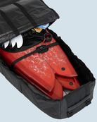 Das eigentliche Highlight des Bunkers ist aber die einzigartige Db Rippenstruktur, die es ermöglicht, das Board Bag in leerem Zustand kompakt zusammenzufalten - superpraktisch, wenn man auf einem Surftrip vor Ort ist und auf engem Raum leben muss. Gerade auf Boottrips oder in engen Bungalows macht das das Leben merklich einfacher. Wir haben diese Funktion ausgiebig getestet und sind begeistert wie einfach und gut das Prinzip in der Praxis funktioniert! Auch in der Innenaufteilung unterscheidet sich der Bunker merklich von anderen Boardbags.