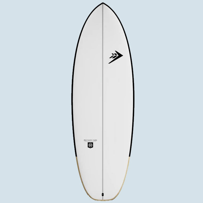 Das Firewire Machadocado ist das neueste Shape aus der Feder des legendären Freesurfers und Shapers Rob Machado. Eine gewisse Ähnlichkeit mit seinem Best Seller, dem Seaside Quad Fish, ist auf den ersten Blick zu erkennen. So versteckt das Machadocado viel Volumen unter der Brust für amtliche Paddelpower. Die Breite des Boards ist großzügig, um für viel Speed in flachen Sections zu sorgen. Machado-typisch ist das tiefe Double Concave, was die üppige Breite des Boards kompensiert und für smoothe Rail Wechsel und viel Geschwindigkeit führt. Analog zum Seaside kommen auch beim Machadocado sehr dünne Rails im Tail zum Einsatz. Und auch hier hilft ein stark ausgedünntes Tail die Geschwindigkeit dieses schnellen Boards zu kontrollieren und erweitert die Wellen Range nach oben zu erweitern. Der Rocker ist flach für ein einfaches Angleiten in die Welle und müheloses Gleiten über softe Sections. Vom Seaside unterscheidet sich das Machadocado dann in anderen Design Elementen: Das Tail ist ein volles Squash Tail für maximalen Lift in kleinen Wellen. Während die Outline in der Mitte recht parallel für viel Down the Line Speed ist, findet man im Heck etwas mehr Kurve für mehr Drehfreudigkeit. Die Nose ist im Vergleich zum Seaside schlanker und der Widepoint befindet sich nicht Fish-typisch vor dem Centerpoint, sondern ungefähr in Höhe der Boardmitte, sprich ähnlich wie bei einem klassischen Shortboard. Zusammengefasst lässt sich sagen dass das Machadocado die Brücke zwischen Daily Driver oder Hybrid, Groveler und Fish schlägt. Das ideale Finnensetup ist ein Twin+Trailer Setup, welches das Beste aus beiden Welten (Thruster: berechenbare Performance und Twin: viel Speed) vereint. In kleinen Wellen kann es aber durchaus auch als reines Twin gesurft werden, und an besonders kraftvollen Tagen macht ein Thruster Setup Sinn.