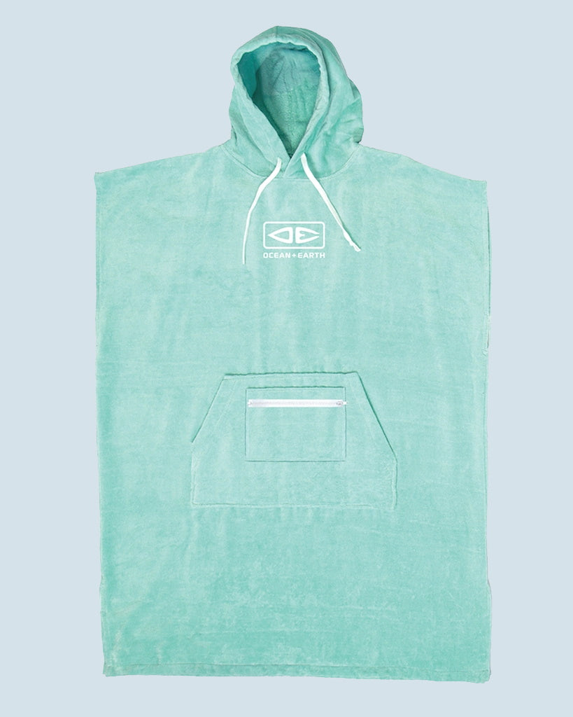 Das Ocean Earth Ladies Hooded Poncho in mint überzeugt nicht nur mit seiner schönen Pastellfarbe. Die praktische Umziehhilfe besteht aus 100% Baumwolle und erstmals gibt es eine Bauchtasche mit einem Reißverschluss.