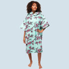 Der All In Beach Crew T Poncho im cherry tree Design eignet sich zum Umziehen und Abtrocknen vor und nach der Surf Session. Das Baumwoll Material ist OEKO-TEX-zertifiziert und zeichnet sich durch einen besonders hohen Kuschelfaktor aus.