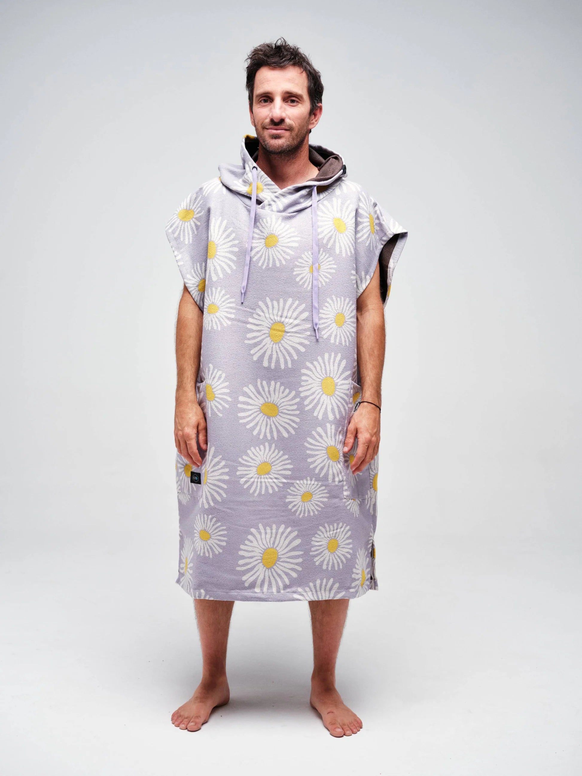 Der All In Quick Dry Poncho im Flower Power Design eignet sich zum Umziehen und Abtrocknen vor und nach der Surf Session. Das Micro Terry Material besteht zu 100% aus Recycling-Stoffen. Das Microfaser Material ist besonders schnell trocknend und im Vergleich zu Baumwoll-Ponchos auch deutlich leichter - so ist der All In Poncho ein idealer Begleiter für Flugreisen, auf denen jedes Gramm zählt. Gleichzeitig ist die Terry Haptik kuscheliger als manch anderer Microfaser Poncho.