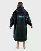 Der originale und weltweit führende wetterfeste Umkleidemantel. Der Dryrobe® Advance wurde für das Outdoor Leben im Freien entwickelt und besteht zu 100 % aus recycelten Stoffen. Dank seiner übergrossen Passform können die Arme durch die Ärmel hineingezogen werden, um sich bequem umzuziehen, egal wo man sich gerade befindet. Das einzigartige, schnell trocknende Fleece-Innenfutter hält warm und trocken, während das robuste, wasserdichte Außenmaterial vor Wind und Wetter schützt.GRÖSSENDie Körpergrösse ist der wichtigste Faktor bei der Auswahl der Grösse. Wenn du zwischen zwei Grössen liegst, wähle bitte die kleinere Grösse.XS (bis zu 159 cm Körpergrösse), S (160-172 cm), M (173-182 cm), L (183-192 cm), XL (193-197 cm), XXL (ab 198 cm)WETTERFESTDer wetterfeste Original Dryrobe Advance Umkleidemantel ist für Kaltwasserfans, Eliteathleten und Ourdoor-Abenteurer zu einem unverzichtbaren Teil der Ausrüstung geworden.Sein Design ist Kult und kimbiniert eine strapazierfähige, wasserdichte Außenseite mit einem superwarmen Innenfutter, das dich vor den Elementen schützt und dir gleichzeitig genügend Raum gibt, um Neoprenanzug, Bade- oder Sportkleidung an- un auszuziehen. Durch das einzigartige, schnell trocknende Fleece-Futter kann der Dryrobe Advance mehrmals am Tag über nasser Sportkleidung verwendet werden, ohne dazwischen getrocknet werden zu müssen.LANGE ÄRMEL Diese Version mit langem Arm ist besonders warm und eignet sich ideal für kälteres Klima, für Athleten, die auf ihren Wettkampfeinsatz warten oder für diejenigen, die bei Sportveranstaltungen zuschauen.NACHHALTIG UND LANGLEBIG Zu 100% aus recycelten Stoffen und mit PFC-freier, wasserabweisender Technik hergestellt. Der Dryrobe Advance hält der Beanspruchung durch einen aktiven Lebensstil viele Jahre lang stand und ist ein strapazierfähiger BegleiterMATERIALAussenmaterial 100% recyceltes Polyamid (Ripstop Nylon)Innenfutter 100% recycelter PolyesterZertifiziert nach dem Global Recycle Standard (GRS) Zertifiziert nach OEKO-TEX Standard 100FEATURES- Maßgeschneiderte, eng anliegende Ärmel mit Verschlüssen an den Handgelenken- Durchgehender, beidseitig verwendbarer YKK®-Reißverschluss- Außenliegende Reißverschlusstaschen mit Fleecefutter- Innenliegende, weich gefütterte Tasche im A4-Format- Innenliegende Reißverschlusstasche für Handy/Geldbörse- Kapuze mit Fleecefutter- Handzugangsschlitze für darunterliegende TaschenSchnelltrocknende back2skin™ TechnologieDas superwarme, maßgeschneiderte Fleecefutter sorgt für ein perfektes Gleichgewicht zwischen Isolierung und der Fähigkeit, Wasser von der Haut wegzuleiten. In Tests ist die back2skin™ Trocknungszeit des Dryrobe Advance deutlich schneller als die unserer Mitbewerber.Wasserdicht bis zu 25.000 mm WassersäuleDas strapazierfähige, wasser- und winddichte Außenmaterial aus Nylon ist mit der PFC-freien, dauerhaften wasserabweisenden Imprägnierung (DWR) BIONIC-FINISH ECO versehen. Diese Technologie weist Wasser ab, sodass es abperlt, anstatt in den Stoff einzudringen. Die Nähte sind thermoverschweißt, um dich vor den Elementen zu schützen.Atmungsaktiv bis zu 8.000 g/m2/tagDer Dryrobe Advance leitet Schweiß und Feuchtigkeit schnell vom Körper weg und aus dem Kleidungsstück heraus, ohne dabei seine wärmenden und wasserdichten Eigenschaften zu beeinträchtigen.PFLEGEDer Dryrobe® Advance muss zwar nicht regelmäßig gewaschen werden, lässt sich aber bei Bedarf leicht reinigen.- Von innen nach außen waschen (idealerweise im Guppyfriend-Waschbeutel)- Maschinenwäsche bei 30 °C im Schonwaschgang- Verwenden Sie ein biologisch abbaubares Waschmittel oder einen technischen Reiniger wie Nikwax Tech Wash (verwenden Sie keinen Weichspüler)- Hängen Sie das Produkt auf oder legen Sie es flach aus und lassen Sie es bei Raumtemperatur trocknen (nicht im Wäschetrockner trocknen)Lieferumfang: 1 Changerobe