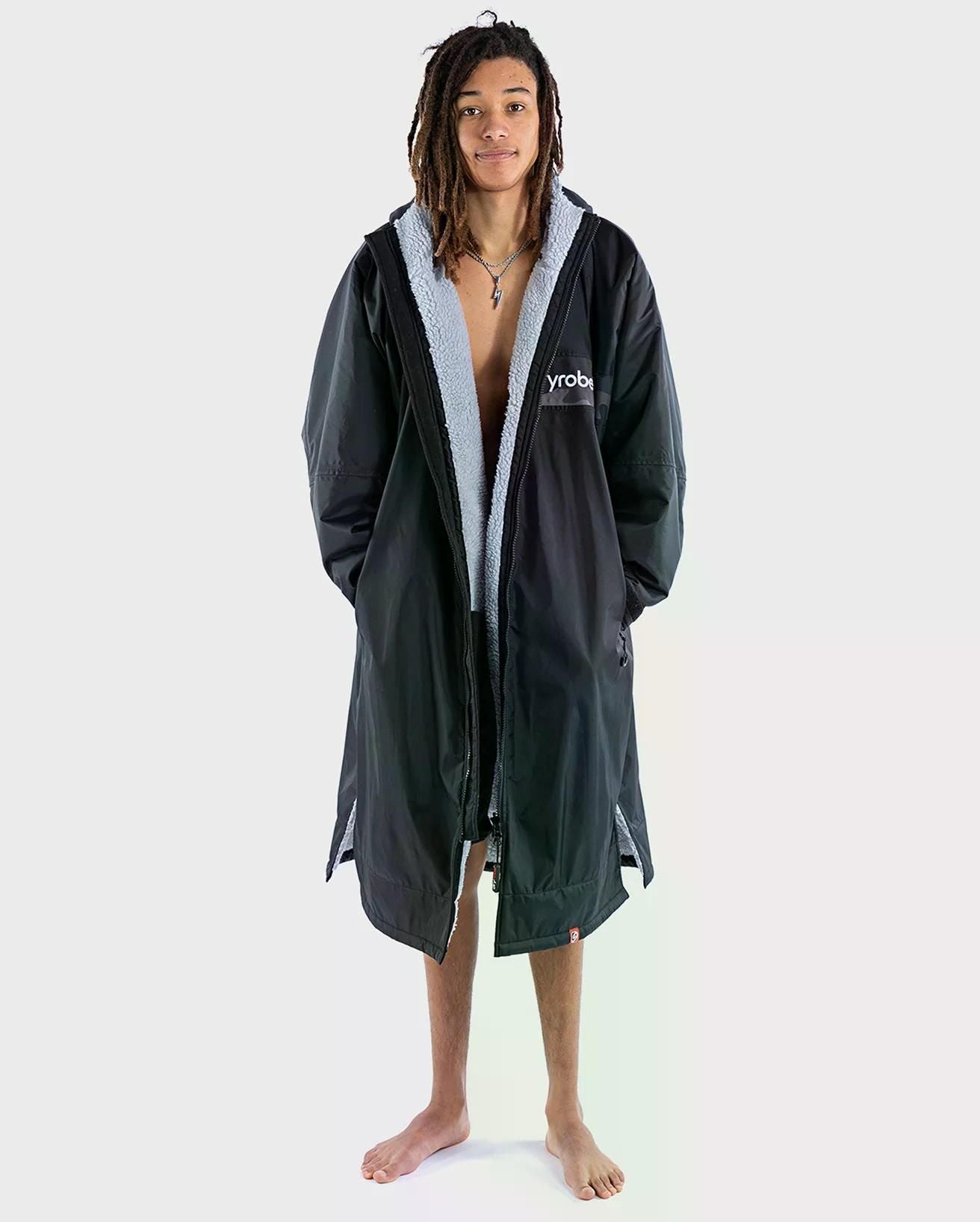 Der originale und weltweit führende wetterfeste Umkleidemantel. Der Dryrobe® Advance wurde für das Outdoor Leben im Freien entwickelt und besteht zu 100 % aus recycelten Stoffen. Dank seiner übergrossen Passform können die Arme durch die Ärmel hineingezogen werden, um sich bequem umzuziehen, egal wo man sich gerade befindet. Das einzigartige, schnell trocknende Fleece-Innenfutter hält warm und trocken, während das robuste, wasserdichte Außenmaterial vor Wind und Wetter schützt.GRÖSSEN