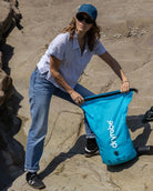 Der Dryrobe® Packsack ist die ultimative Lösung, um den Dryrobe® Umziehmantel auf Reisen zu einer möglichst kleinen Größe zu komprimieren.Dieser Packsack kann auch als Reisetasche verwendet werden, um z.B. den Dryrobe® Advance Change Robe oder alle andere Dryrobe Poncho Modelle für Flüge oder Reisen zu verstauen. Den Umkleidemantel einfach in die Tasche stecken, das obere Ende der Tasche einrollen und schließen, das Ventil aufdrehen, alle Luft durch knien auf er Tasche herauspressen, dann die Kompressionsgurte festzurren und das Ventil zudrehen.