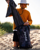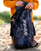 Bitte beachten, dass die Dryrobe® Compression Travel Bag nicht unter Wasser getaucht werden kann. Sein Verschluss hält aber bei Spritzwasser und Regen dicht.