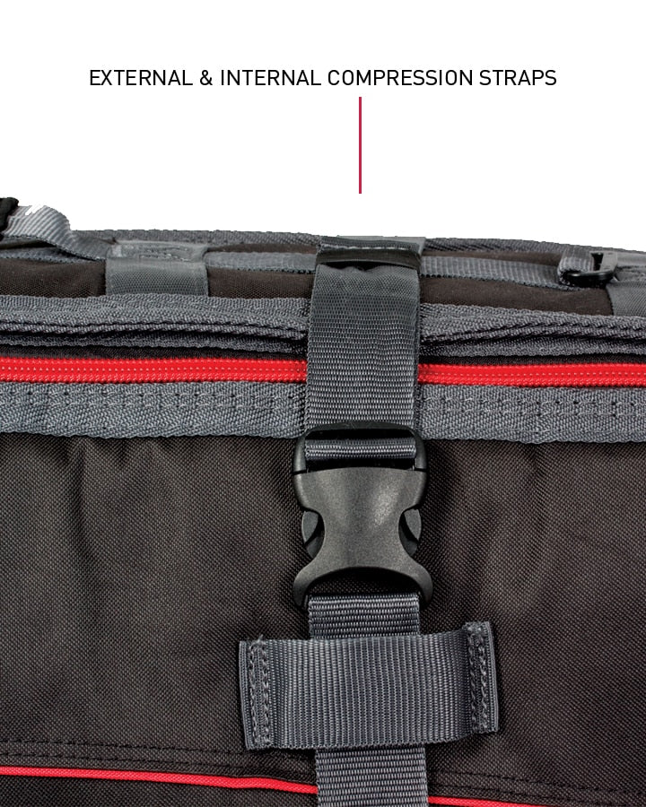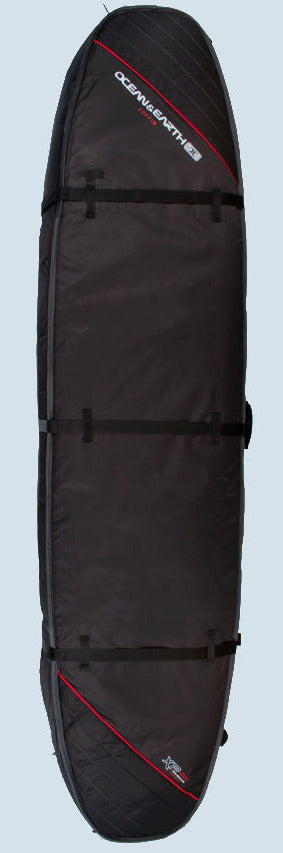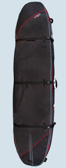 Das Ocean Earth Double Coffin Longboard ist eine robuste, üppig gepolsterte Boardbag für alle die mit langen Wellenreitern unterwegs sind. Mit 20mm Polsterung an den Rails ist das Coffin eine der solidesten Bags in unserem Sortiment - und Nose- und Tailbereich sind nochmals zusätzlich verstärkt. Im Inneren sorgen dann Straps und ein Board Divider für Ordnung; auch außen sind Gurte angebracht um das Boardbag auf ein möglichst kompaktes Maß zusammen zu zurren. Der Schnitt der Coffin Bag ist großzügig, so dass auch breitere Surfboard Platz finden.