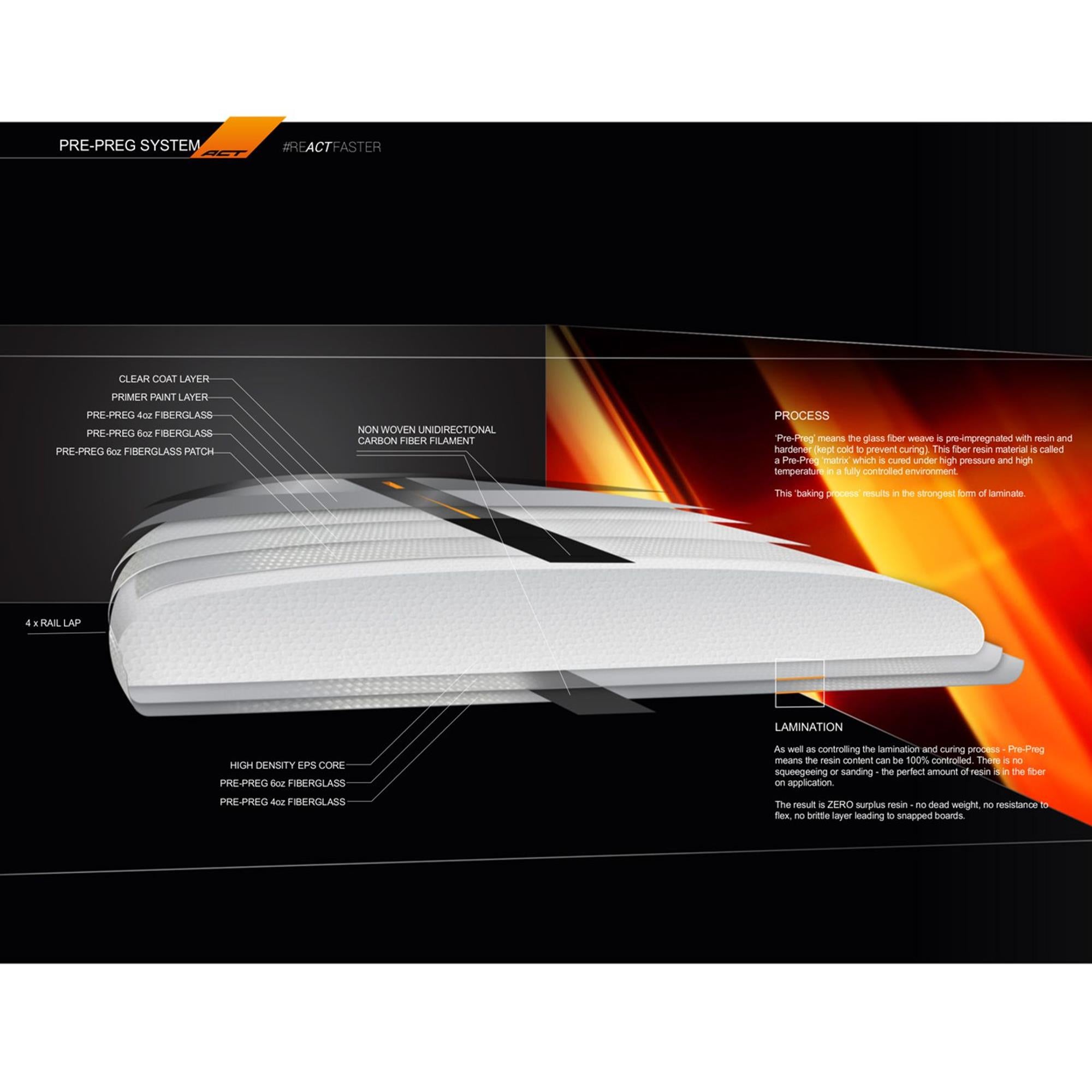 ACT Epoxy - Die robuste und leichteste Epoxy Sandwich Bauweise von Torq. Ein EPS Kern wird oben mit 2x4oz und unten mit 1x6oz Glasfasermatte und Epoxyharz laminiert, mit einem zusätzlichen Railband und einer Bambusmatte im Deck verstärkt und mit einer Kunststoff/Carbon Schicht ummantelt. Zusammen mit der Pre-Preg Technologie, bei der die Glasfasermatten bereits vor dem Auftragen auf den Kern maschinell mit Epoxidharz getränkt werden, ergibt das ein extrem robustes und doch sehr leichtes Surfboard. Wir empfehlen diese Bauweise fortgeschrittenen Surfern mit mittelgroßem Budget, die ein unempfindliches sowie pflegeleichtes Surfboard zum Reisen suchen, das gleichzeitig den Ansprüchen für dynamische Turns genügt. Einsteiger und leicht fortgeschrittene Surfer werden auch mit den günstigeren TET, TET-CX und X-lite Bauweisen auf ihre Kosten kommen.
