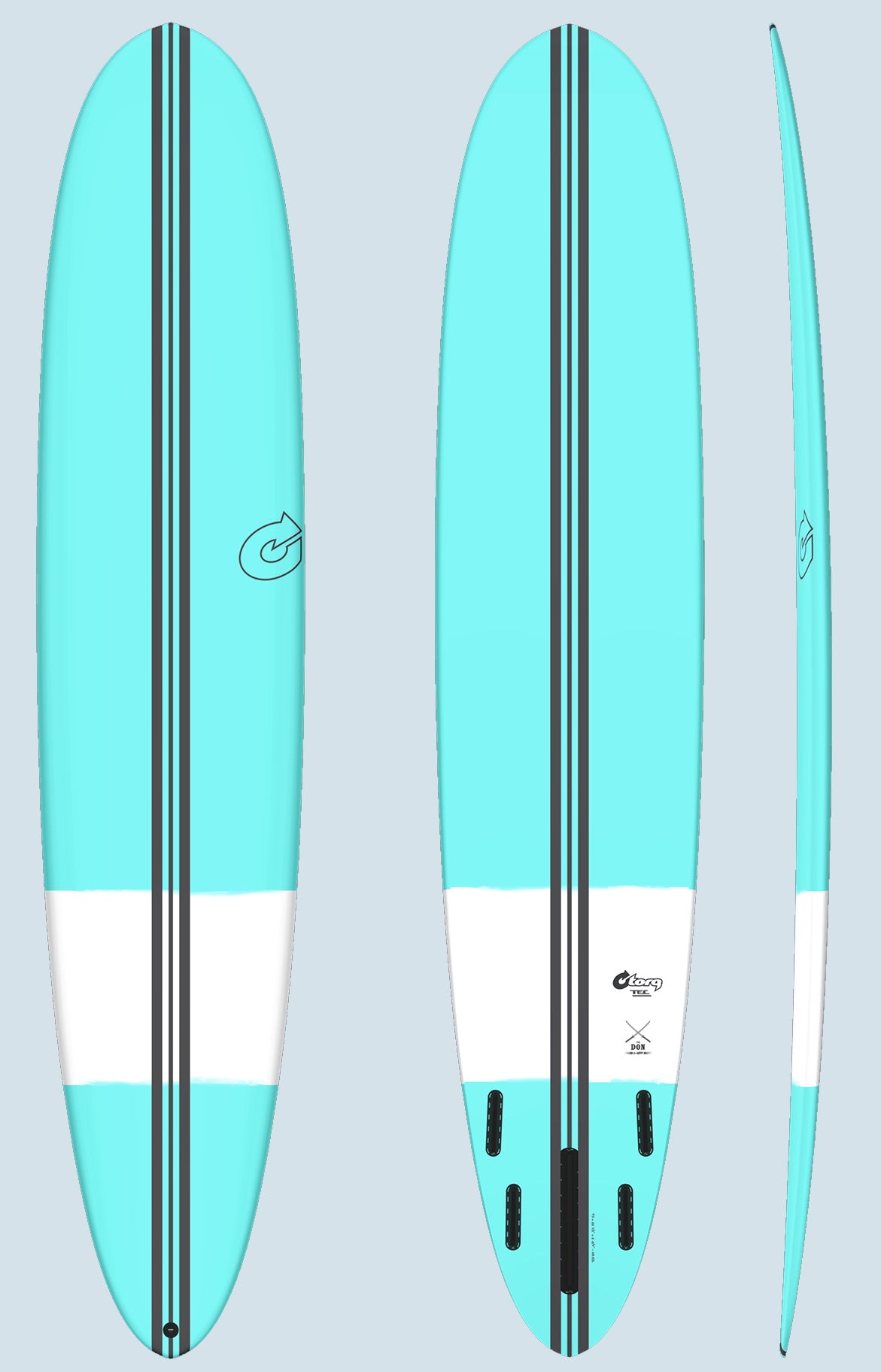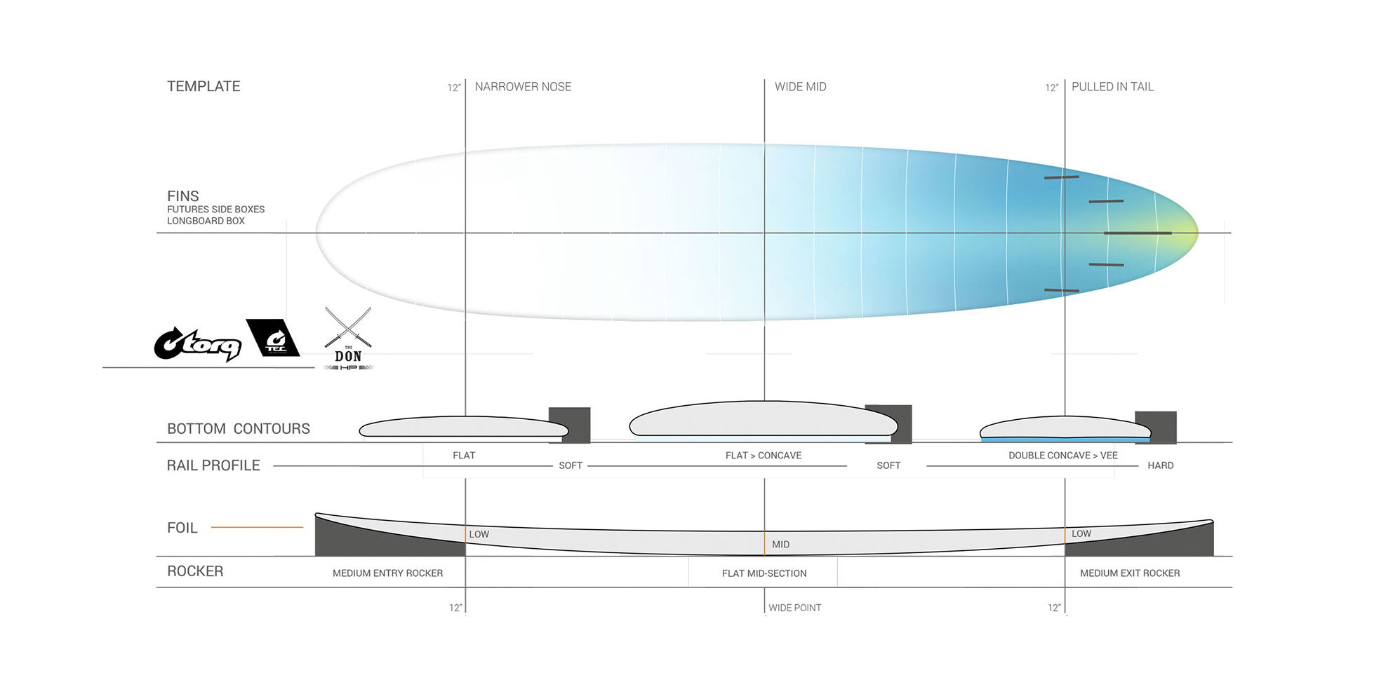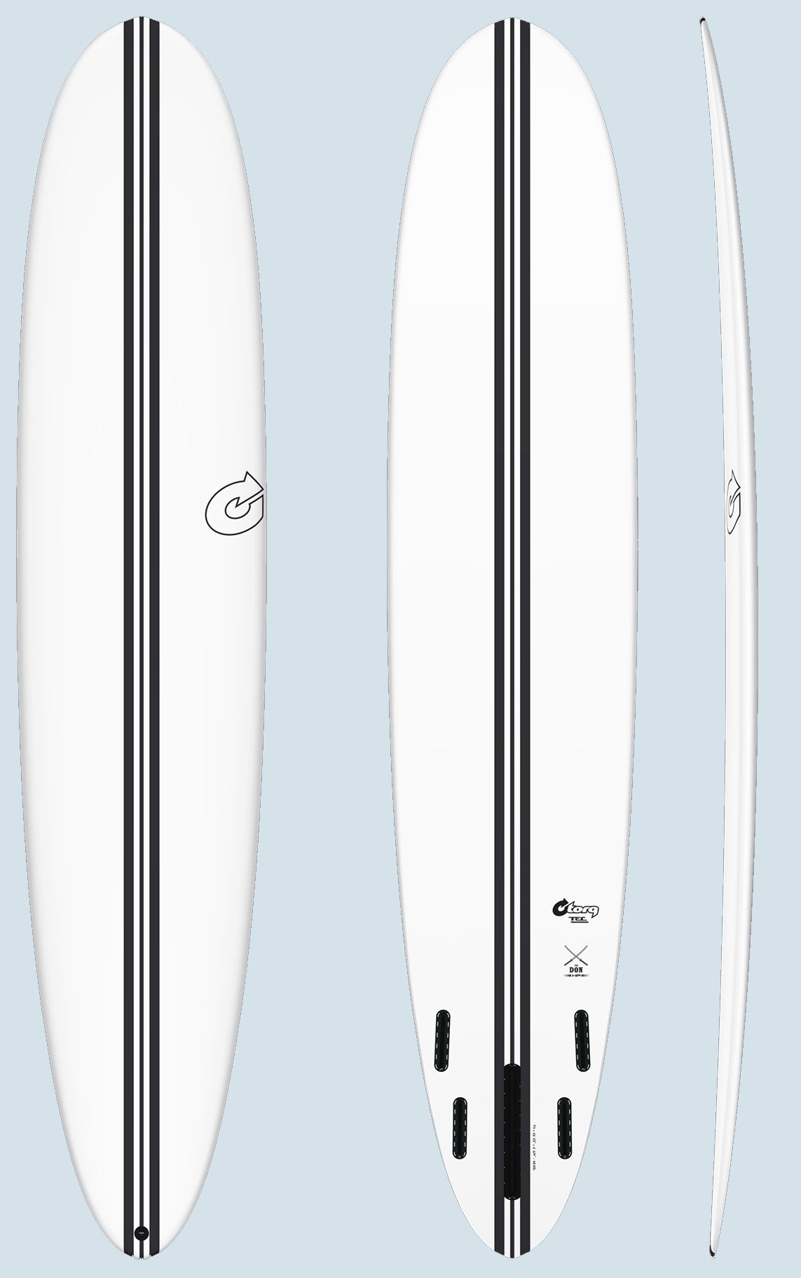 Der Don NR 9’1’’ ist die Nose Rider Variante des Torq TEC Epoxy The Don. Hauptunterschied ist die breitere, flachere Nose mit einem tieferen Single Concave für mehr Lift bei Noserides. Trotzdem ist der Don NR kein klassischer Noserider, da er den hinteren Teil des Boards mehr oder weniger vom originalen Don übernimmt. Sprich harte, runtergezogene Rails und Double-Concave-to-V-Bottom für leichtes Drehen übers Tail.