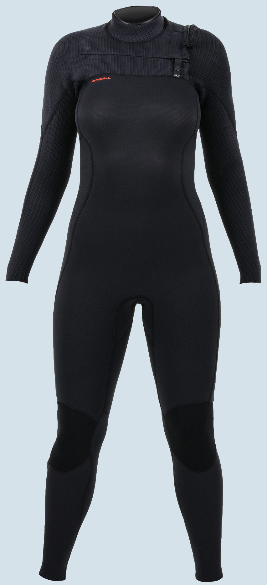 die abgespeckte, günstigere Performance Variante, die sehr leicht ist, aber nicht so warm, das sie auf einen Innenfütterung verzichtet. Dieser günstige Neoprenanzug sei vor allem als Sommer Wetsuit empfohlen. Er eignet sich für verhältnismäßig warme Wassertemperaturen oder weniger kälteempfindliche Surferinnen. und die "normale" Warmth Variante, die wie der klassische Dawn Patrol mit Innenfütterung ausgestattet ist. Dieser Fullsuit ist unsere Empfehlung für kältere Wassertemperaturen, kälteempfindlichere Surferinnen und generell alle, die einen soliden, gut isolierenden Allround Wetsuit suchen.Das Chest Zip Verschlusssystem erschwert zwar den Ein- und Ausstieg, da die Öffnung kleiner ist. Dafür sorgt der Chest Zip für erhöhte Bewegungsfreiheit im Rücken und weniger Wasseraustausch insgesamt. Genau wie bei der Back Zip Variante wird auf Glatthautneopren zugunsten erhöhter Flexibilität verzichtet. Solide Glued-Blindstitched Nähte (das Neopren wird an den Nahtstellen abgeschrägt, aufeinander geklebt und dann vernäht) sorgen für Bewegungsfreiheit im Wasser und eine lange Lebensdauer.