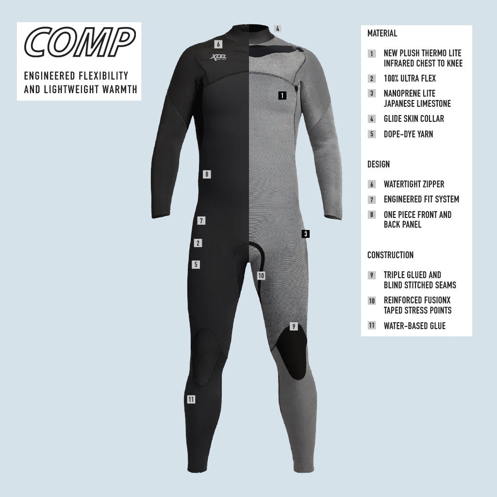 Der Xcel Comp bietet eine hohe Flexibilität durch den Verzicht auf Glatthaut Neopren im Oberkörper. Um trotzdem eine gute Wärmeleistung zu gewährleisten, ist der Comp von innen durchgehend mit einem Thermo Lite Plush Futter ausgestattet. Das Frauen Modell punktet zudem durch eine Quernaht im Taillenbereich, die für langfristige Formstabilität sorgt.