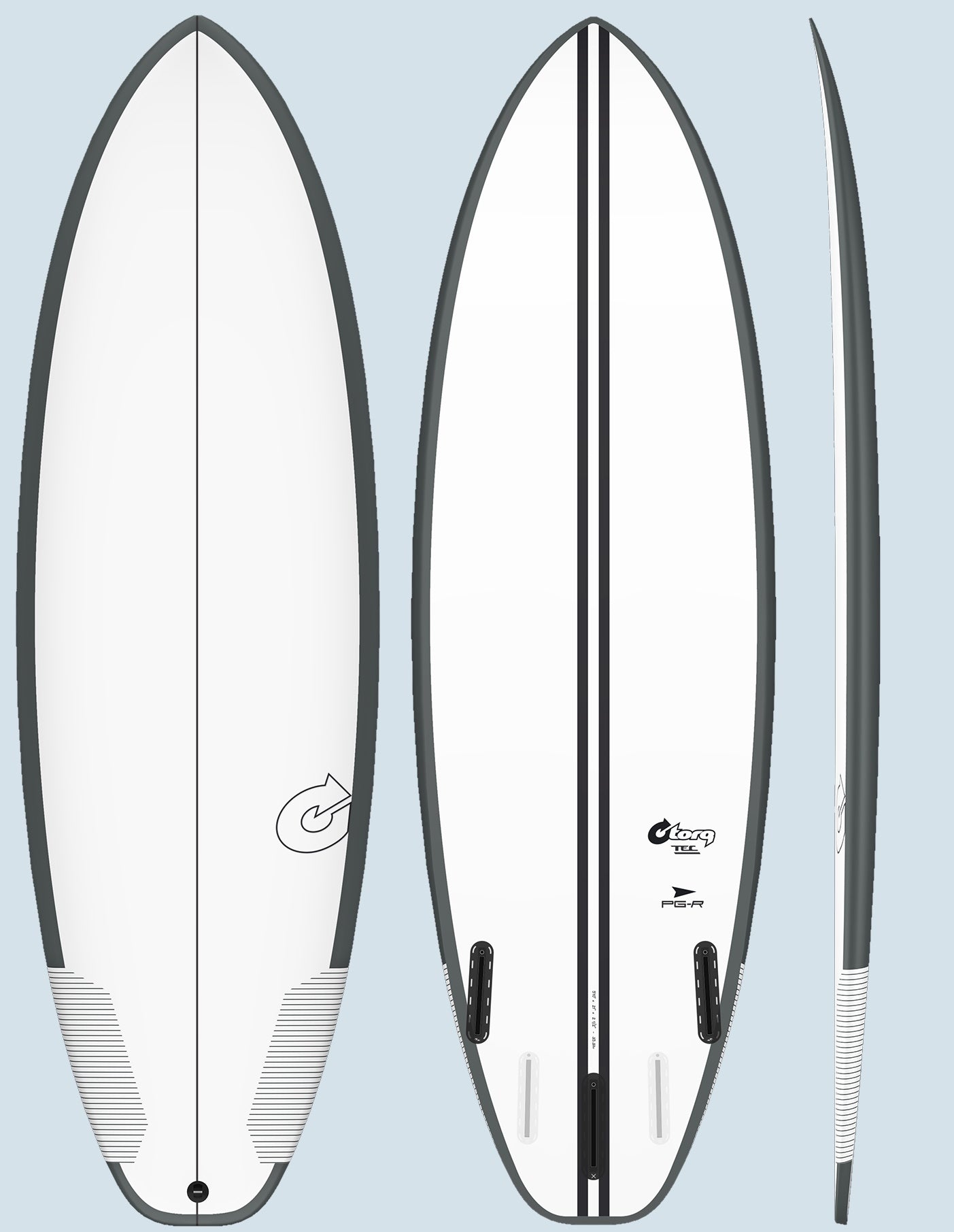 Das PG-R ist das Everyday Surfboard in der Torq Shortboard Range. Mit großzügigem Volumen, flachem Rocker und breiter Nose und Tail ausgestattet, sorgt es für super Angleitverhalten und kann auch gut über schwache Sektionen floaten. Es hat einen ähnlich breiten Einsatzbereich wie das Multiplier, ist aber eher für (unter-) durchschnittliche Surfbedingungen optimiert. Es ist das Shortboard in der Torq Range, das am besten grovelt, also am meisten aus schwachen Wellen herausholen kann.