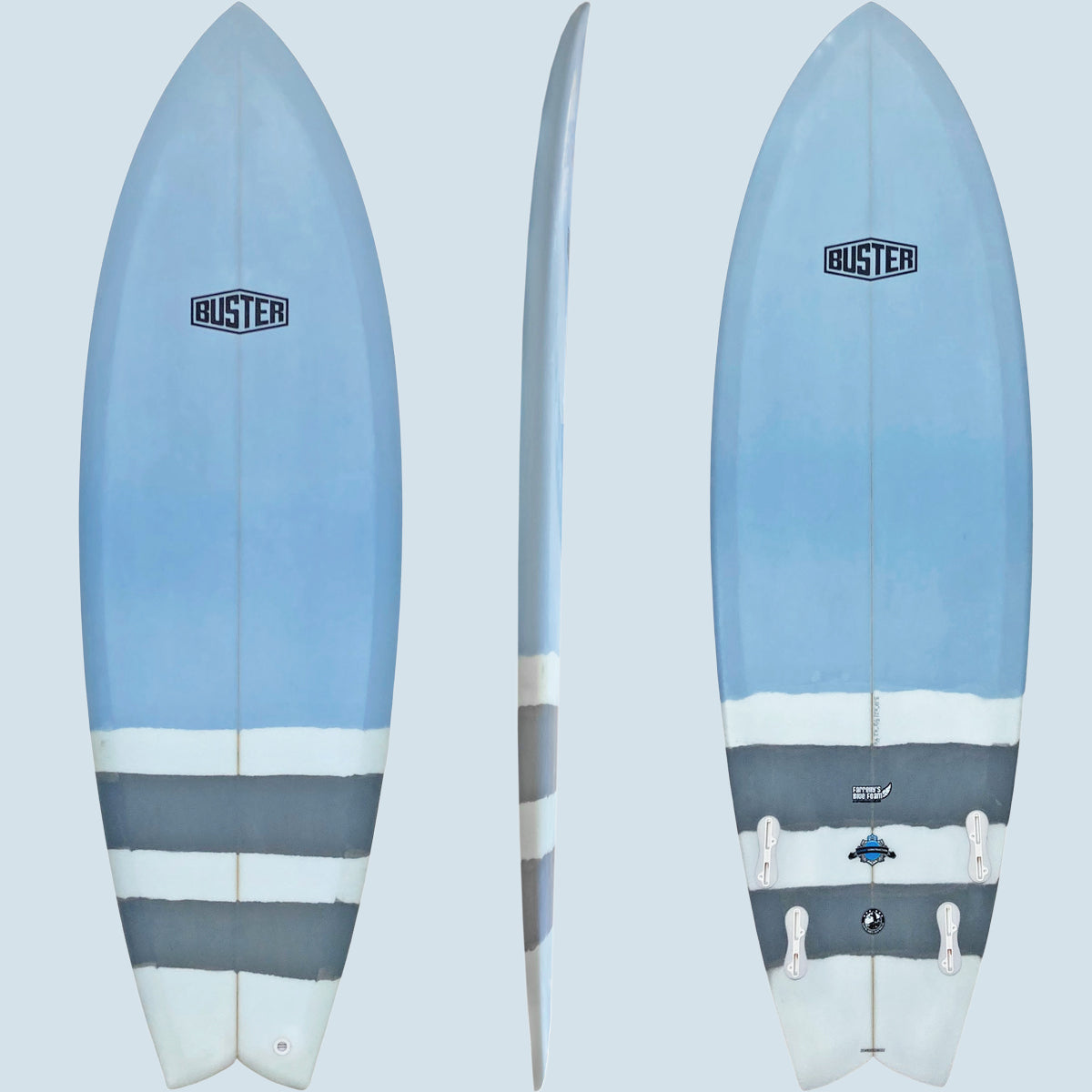Alle Surfboards in der PU/Polyester Classic Construction von Buster sind oben mit einer 6oz und einer 4oz Glasfasermatte und unten mit einer 4oz Glasfasermatte laminiert, was etwas stabiler und schwerer als der Performance Shortboard Standard ist, bei dem oben zwei 4oz Matten zum Einsatz kommen. Dadurch sind Polyester Shortboards von Buster minimal schwerer und steifer, aber auch etwas stabiler als Shortboards namhafter Hersteller wie Channel Islands, Lost, etc.