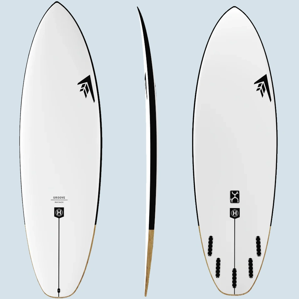 Rob Machado ist nun seit einer Weile nicht mehr nur für seine herausragende Performance auf dem Surfboard, sondern auch für seine Skills als Shaper bekannt. Seine Modellpalette unter dem Firewire Label zeichnet sich dabei durch die Bank weg durch eine besondere Eigenschaft aus: Nutzerfreundlichkeit. Rob hat sich auf alternative Surfboards Designs konzentriert, bei denen viel Foam mit pfiffigen Features wie besonders schlanken Rails im Tail und ausgeprägten Double Concaves kombiniert werden, damit der Performance Aspekt nicht zu kurz kommt. Mit dem Groove bringt er nun zum ersten Mal ein Board raus, welches auf den ersten Blick wie ein typisches High Performance Shortboard daher kommt: Mit einer cleanen Outline ohne aggressive Hip und einem Squash Tail. Auf den zweiten Blick offenbart sich dann die vollere Nose für viel Paddelpower und das Machado-typische Double Concave für einfache Railwechsel und viel Speed. Der Tail Block ist ebenfalls etwas breiter als bei den meisten High Performance Shortboards. Das sorgt für mehr Lift und Geschwindigkeit in suboptimalen Bedingungen. Die Rails sind analog zu seinen anderen Modellen im Tail wieder besonders schlank, damit das Board ruhigen Gewissens mit etwas mehr Foam gesurft werden kann. Der Rocker ist shortboard-typisch eher kurvig, um auch in engen, steilen Sections vertikale Turns zu ermöglichen. Das Groove funktioniert gleichermaßen als Quad wie als Thruster, wobei ersteres für mehr Speed und Drive sorgt. In kleinen Wellen sollte das Board unbedingt auch als Twin mit Trailer Finne ausprobiert werden!
