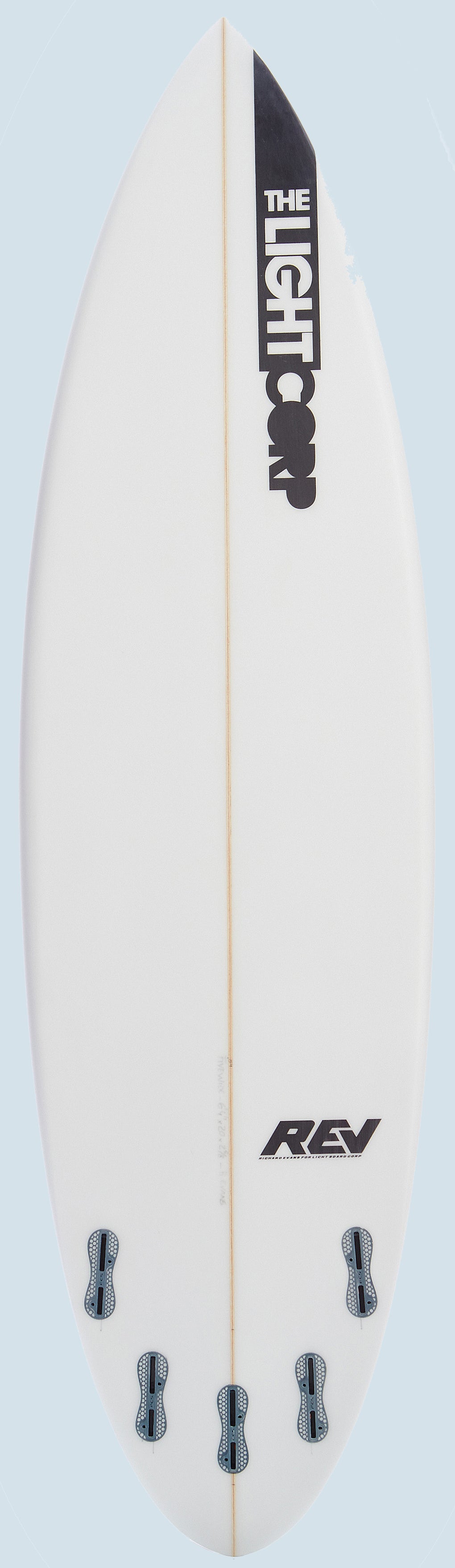 Während bei Light die Performance Shortboards der REV Serie immer mit Carbon Patches zur Verstärkung des Tails und Standard Shortboard Glassing produziert werden, sind die Funshapes für Intermediates mit Resin Tint Farbe und einem etwas schwereren, solideren Glassing versehen.