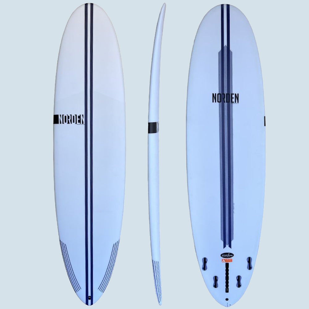 Die Time Machine von norden ein ist Longboard im Taschenformat und erinnert an das Modern Love Child, nur dass die Time Machine deutlich mehr Volumen hat. Ein schmales Pin Tail für enge Turns und Kontrolle in kritischen Bedingungen wird mit einer dicken, voluminösen Boardmitte und Nose für maximalen Glide down the line, einfaches Wellencatchen und sogar "noseridablility" gekoppelt. Das Fin Set up tut ebenfalls seinen Beitrag, um die Vielseitigkeit zu erhöhen mit Single Fin, 1+2 oder Quad Option je nach Wellen und persönlichem Geschmack.