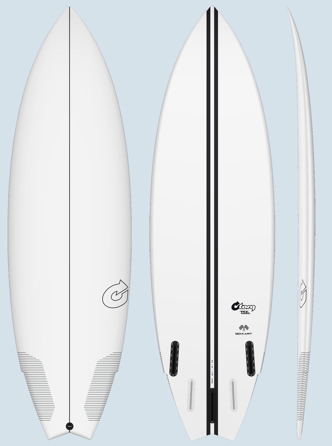 Der Go-Kart von Torq ist ein Shortboard/Fish-Hybrid, der das Beste aus beiden Welten zu einem Allrounder vereint. Die Gleitfähigkeit und der Float eines Fishs plus die Wendigkeit und Agilität eines Shortboards - ein sehr gutes Shape für Surfer, die ein skatiges Shortboard für die suboptimalen Tage suchen, das aber auch noch surfbar bleibt, wenn die Wellen mal etwas mehr Dampf haben.