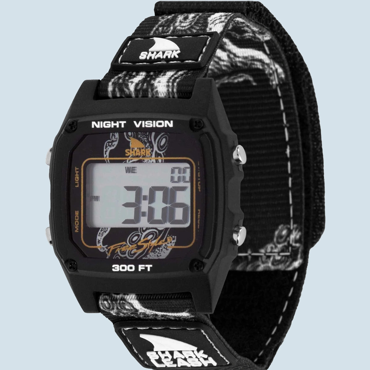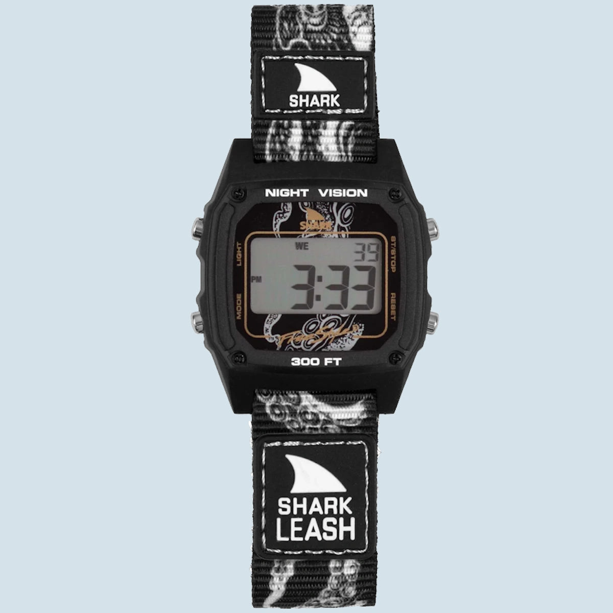 Die Freestyle Shark Classic Leash in der Farbe Octopus Black ist eine ikonische, robuste Surf Watch zum Wellenreiten und für den Alltag. Die Freestyle Shark überzeugt mit frischen Farbvarianten, robuster Verarbeitung und stufenlos einstellbarem Armband. Sie hat eine Hintergrundbeleuchtung, Datumsanzeige, Timer, Stoppuhr und Alarmfunktion. Aber Achtung: Die Shark hat keine Tidenfunktion an Board!