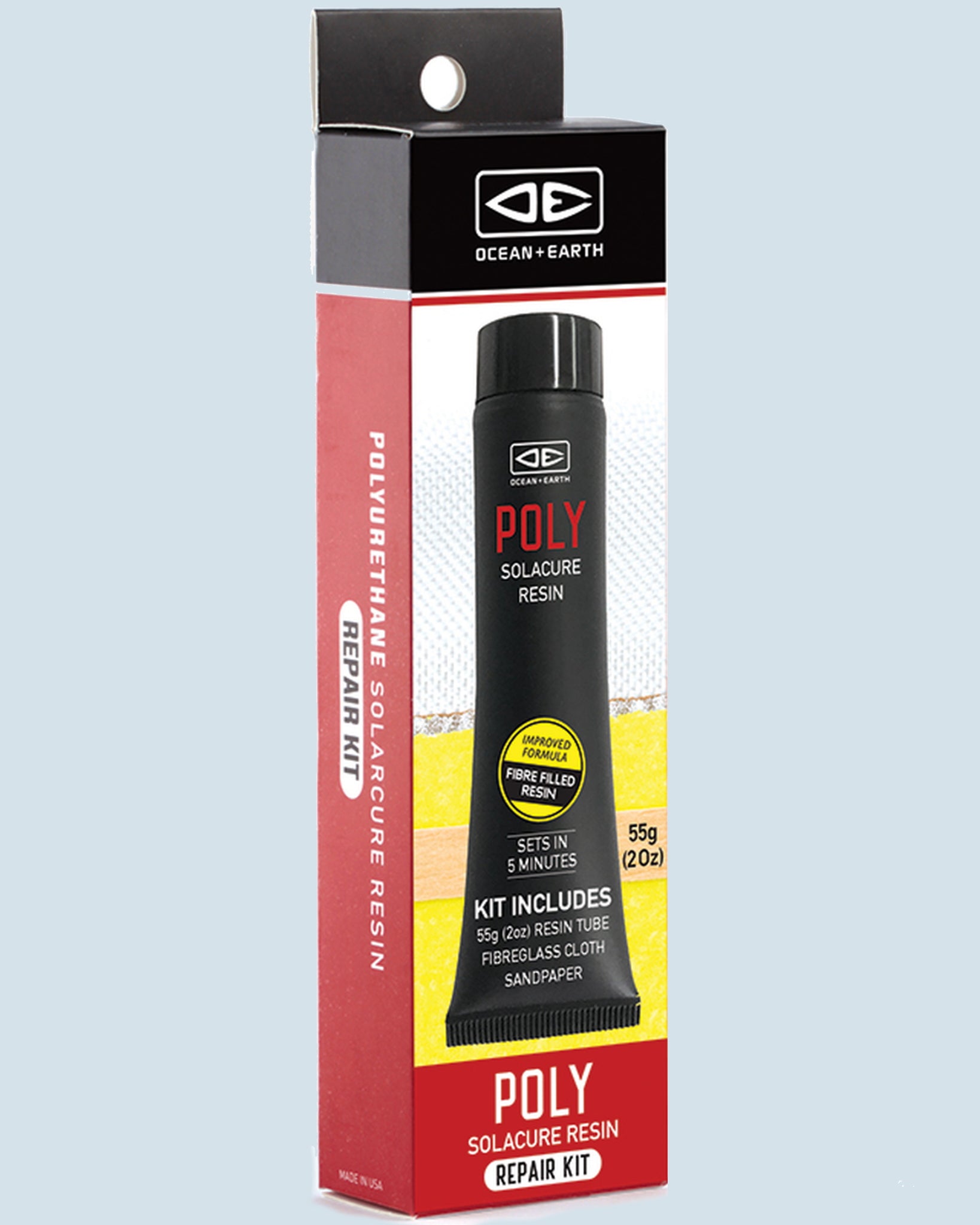 Wichtig: Bei der Surfboard Reparatur ist es unabdinglich zu wissen, welchen Harz Typ man benötigt, also ob das Board mit Epoxy oder Polyester laminiert ist, und ob es sich um einen PU oder EPS Blank handelt, da Polyester Produkte den EPS Schaumkern angreifen. Mit Epoxy-Produkten hingegen können alle Arten von Surfboards repariert werden, sie sind jedoch etwas schwerer zu verarbeiten. Im Zweifelsfall gerne anrufen, damit wir bei der Wahl des richtigen Ding Repair Sets helfen können und es nicht zum Super GAU kommt!