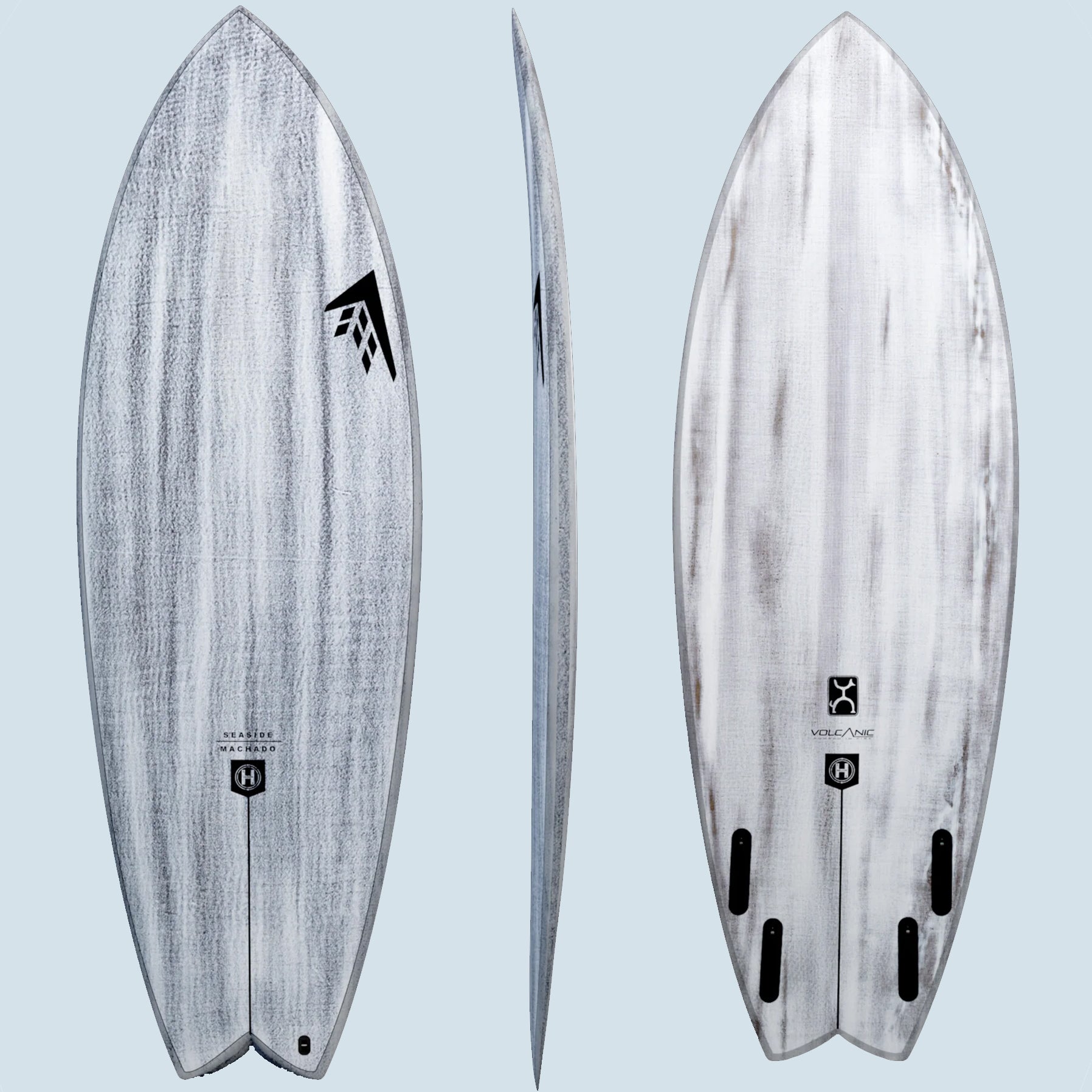 Das Firewire Machadocado ist das neueste Shape aus der Feder des legendären Freesurfers und Shapers Rob Machado. Eine gewisse Ähnlichkeit mit seinem Best Seller, dem Seaside Quad Fish, ist auf den ersten Blick zu erkennen. So versteckt das Machadocado viel Volumen unter der Brust für amtliche Paddelpower. Die Breite des Boards ist großzügig, um für viel Speed in flachen Sections zu sorgen. Machado-typisch ist das tiefe Double Concave, was die üppige Breite des Boards kompensiert und für smoothe Rail Wechsel und viel Geschwindigkeit führt. Analog zum Seaside kommen auch beim Machadocado sehr dünne Rails im Tail zum Einsatz. Und auch hier hilft ein stark ausgedünntes Tail die Geschwindigkeit dieses schnellen Boards zu kontrollieren und erweitert die Wellen Range nach oben zu erweitern. Der Rocker ist flach für ein einfaches Angleiten in die Welle und müheloses Gleiten über softe Sections. Vom Seaside unterscheidet sich das Machadocado dann in anderen Design Elementen: Das Tail ist ein volles Squash Tail für maximalen Lift in kleinen Wellen. Während die Outline in der Mitte recht parallel für viel Down the Line Speed ist, findet man im Heck etwas mehr Kurve für mehr Drehfreudigkeit. Die Nose ist im Vergleich zum Seaside schlanker und der Widepoint befindet sich nicht Fish-typisch vor dem Centerpoint, sondern ungefähr in Höhe der Boardmitte, sprich ähnlich wie bei einem klassischen Shortboard. Zusammengefasst lässt sich sagen dass das Machadocado die Brücke zwischen Daily Driver oder Hybrid, Groveler und Fish schlägt. Das ideale Finnensetup ist ein Twin+Trailer Setup, welches das Beste aus beiden Welten (Thruster: berechenbare Performance und Twin: viel Speed) vereint. In kleinen Wellen kann es aber durchaus auch als reines Twin gesurft werden, und an besonders kraftvollen Tagen macht ein Thruster Setup Sinn.