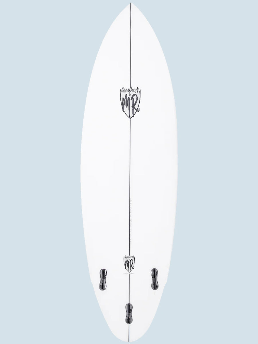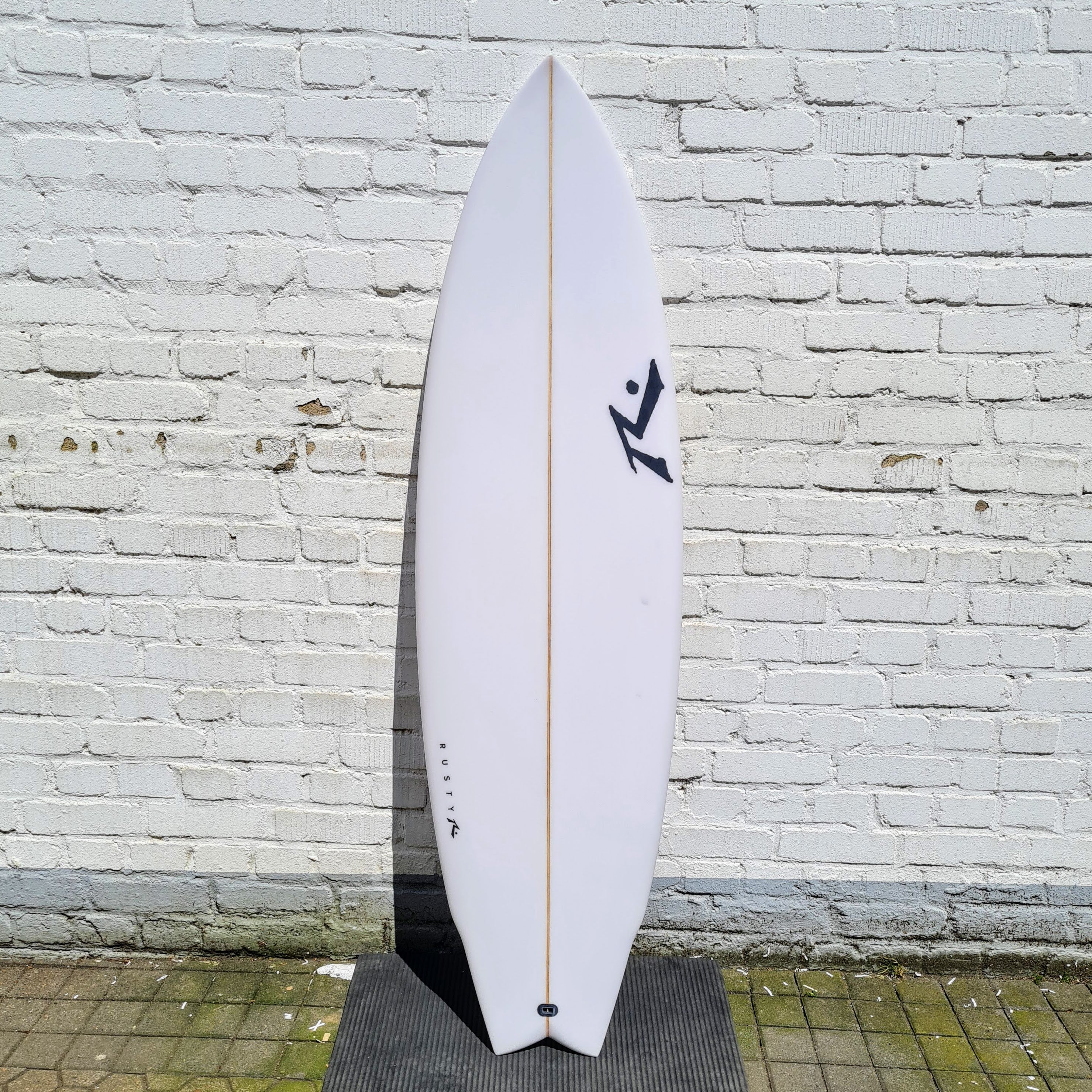 Das Rusty The Deuce ist aus einer Kollaboration von Clint Preisendorfer und Noel Salas von der Surfboard Review Serie "Surf'n'Show" entstanden. Noel war auf der Suche nach einem Surfboard, welches die Vorzüge von einem Twin Fin (Speed und spaßiger Release) mit denen eines klassischen Performance Shortboards (Kontrolle und Präzision) verheiratet. Im Vergleich zu den meisten Twin Fins auf dem Markt kommt das Deuce daher mit einer längeren, schlankeren Outline daher. In der Nose ist aber dennoch über die Dicke mehr Foam untergebracht als bei einem handelsüblichen Shortboard. Zudem ist der Entry Rocker relativ flach, was in Kombination mit Rusty’s “Rapid Entry” Concave für leichtes, frühes Angleiten sorgt. In der Mitte ist die Outline relativ parallel für viel Drive, während im Heck ein Winger die Boardbreite drastisch reduziert. Einerseits verleiht das schmalere Tail Kontrolle, andererseits sorgen die Winger auch für mehr Agilität, da dem verdrängten Wasser in einem Turn auf dem Rail ein früherer Release Punkt gegeben wird.