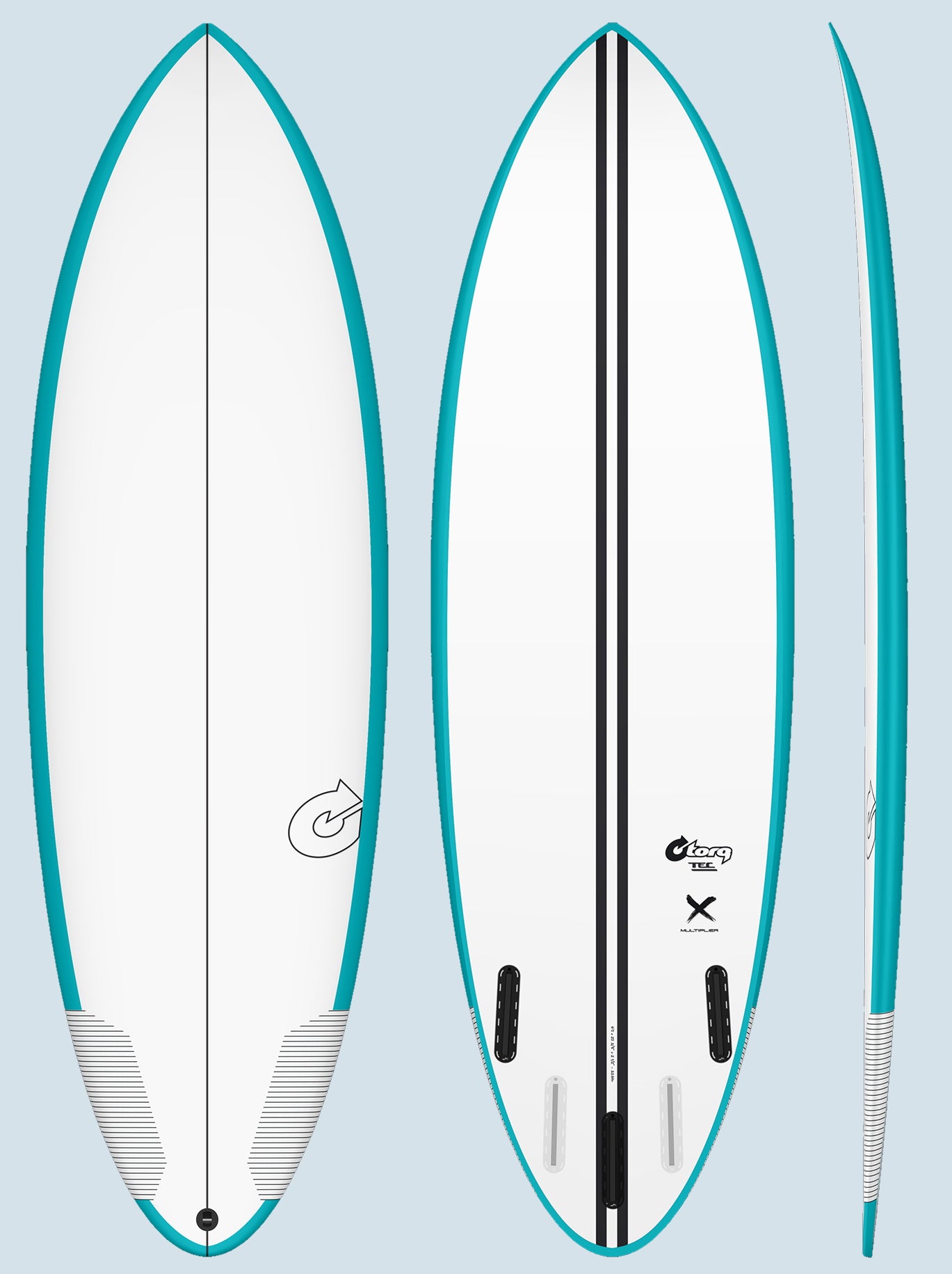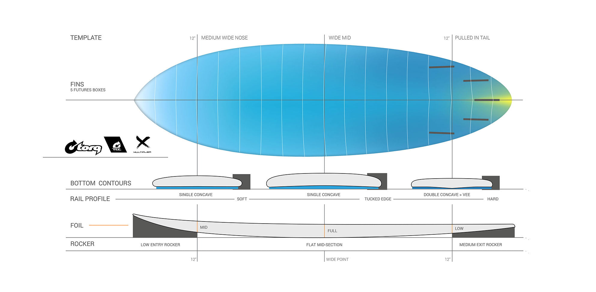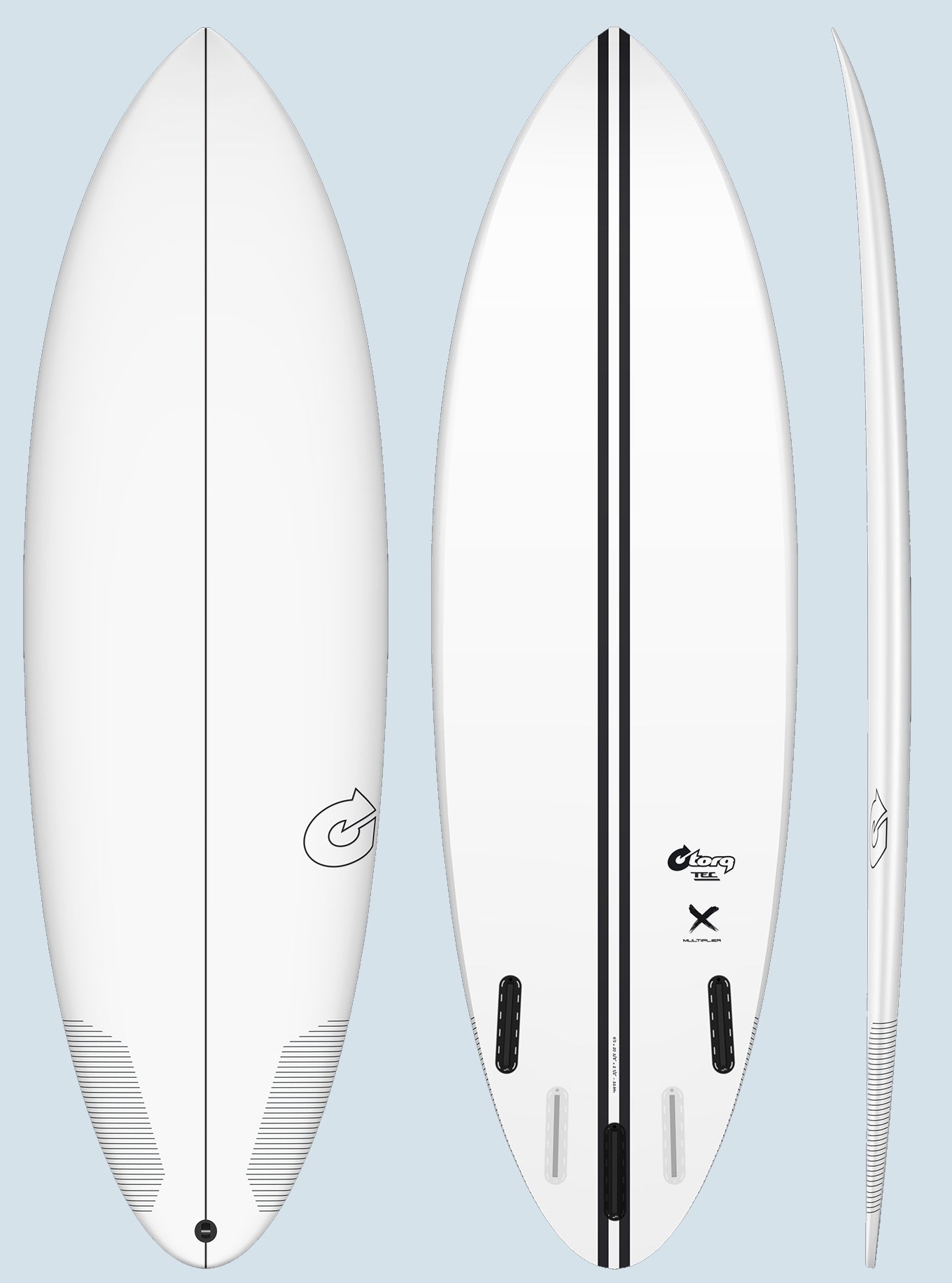 Mit einem dünnen und relativ schmalen Tail und einer flachen, breiten Nose erinnert der Torq TEC Epoxy Multiplier an bewährte "One Board Quiver"-Shapes wie das Hypto Krypto oder der Quiver Killer von Lost. Mit einer relativ flachen Rockerlinie und einer breiten Nose für einfaches Wellencatchen einerseits und einem ausgedünnten Roundtail für enge Turns und Kontrolle in steilen Wellen hat der Multiplier von Torq für alle Wellen zwischen hüft- und überkopfhoch eine Antwort parat. Abgerundet wird das Paket durch die von Torq bekannte, sehr robuste Bauweise, was den Multiplier zu einem sehr guten Reiseboard macht, wenn man nur ein Surfboard mitnehmen kann.
