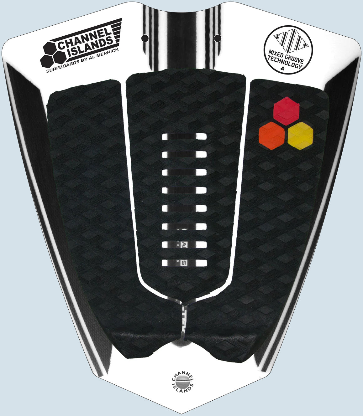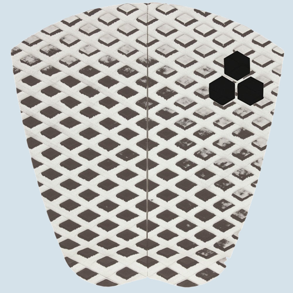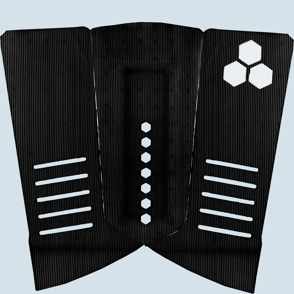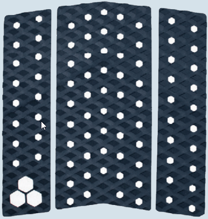 Des Weiteren unterscheiden sich Traction Pads in der Anzahl der Einzelteile. Die meisten Pads in unserem Sortiment sind dreiteilig und können entsprechend der Breite des Tails und der Größe des Fußes aufgefächert werden. Einteilige Pads wiederum bieten den Vorteil, dass sie etwas leichter aufzukleben sind. Sie sind meistens etwas breiter als mehrteilige Pads und nur selten für schmale Tails geeignet. Zweiteilige Pads sind üblicherweise Flat Pads.