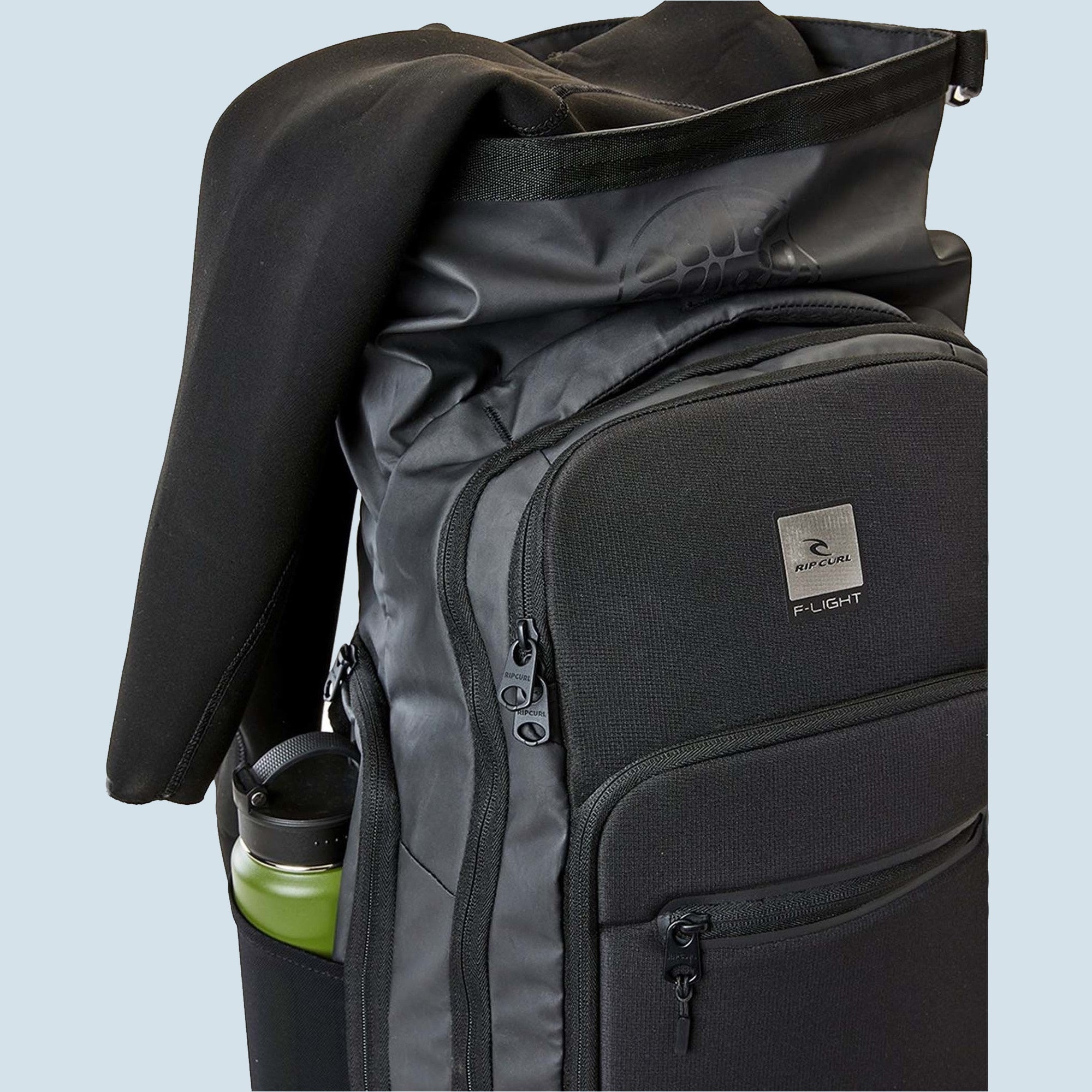 Der 25l Ventura Backpack aus der Surf Series von Rip Curl ist ein funktioneller Nass-/Trocken-Rucksack mit einem großen Rolltop Hauptfach, das bis zu 25l fasst. Zwei nasse Wetsuits und noch mehr passen locker hier hinein. Nutzt man den Rucksack im Alltag oder als Strandrucksack kann man ihn auch einfach auf eine sehr kompakte Größe zusammenrollen.