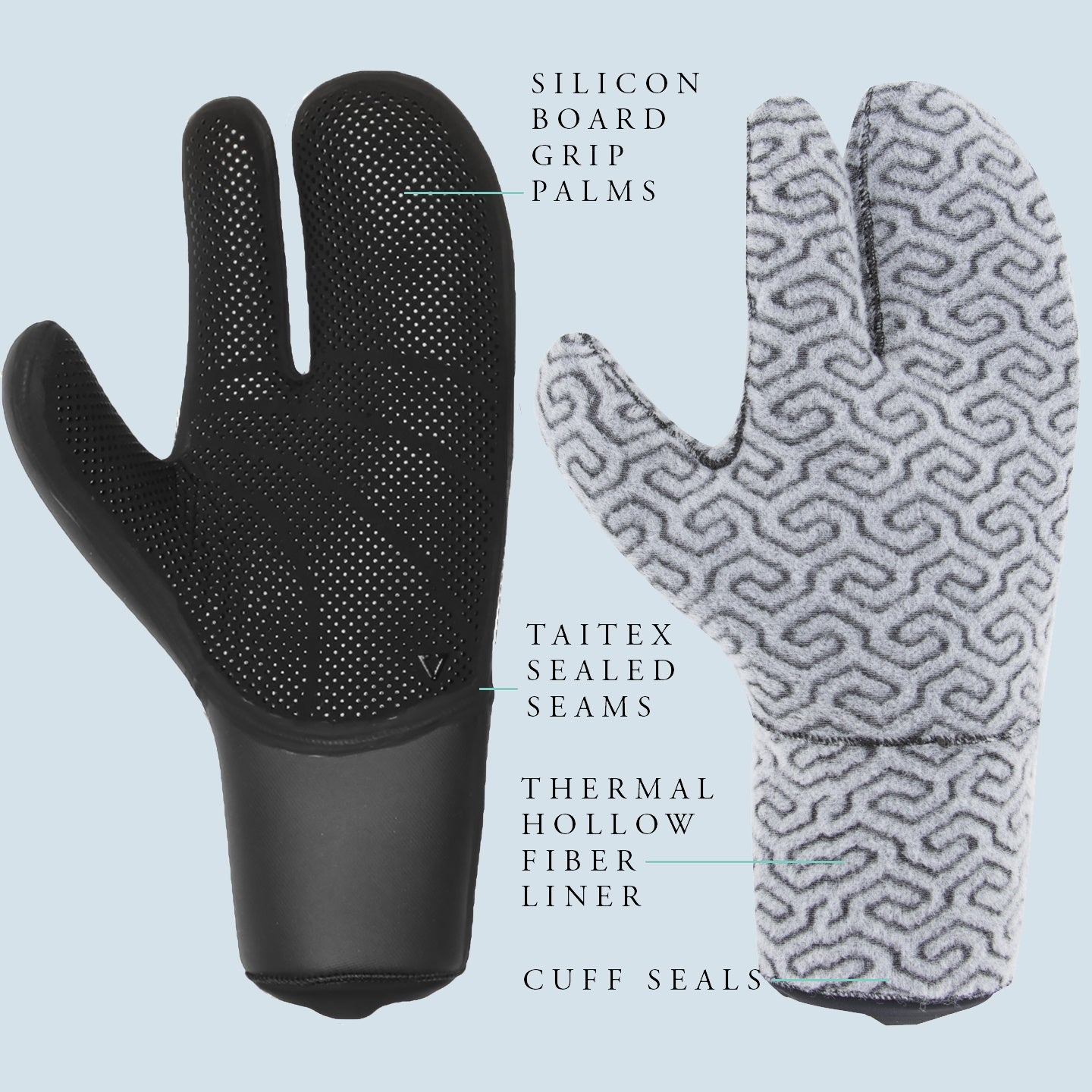 Neben der Materialstärke variiert auch die Ausführung: Bei den dünneren Handschuhen überwiegt der Vorteil des höheren Tragekomforts der 5-Finger Gloves, ab 5mm und darüber hinaus bevorzugen die meisten Surfer die sogenannten Lobster Gloves (von manchen Herstellern auch Wetsuit Mitts oder 3 Finger Gloves genannt). Hierbei handelt es sich um einen Hybrid aus Handschuh und Fäustling, sodass die Finger sich gegenseitig wärmen können.