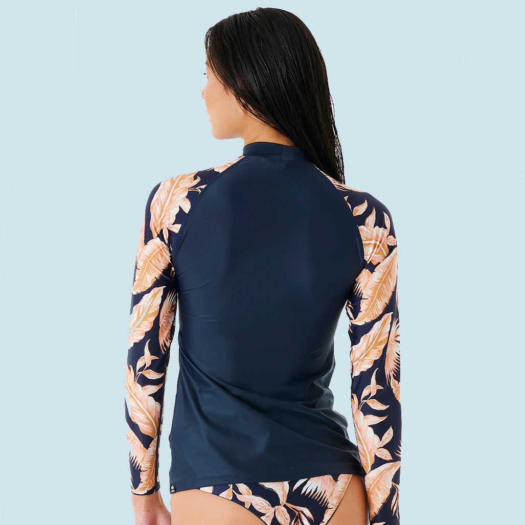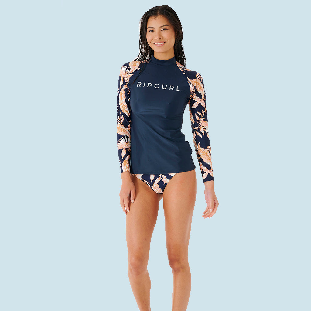 Der Rip Curl Classic Surf L/S Surf Suit (black) ist ein eng anliegender, langärmliger Badeanzug zum Surfen mit modischem Front-Reißverschluss und UV-Schutzfaktor 50+. Da der Front-Reißverschluss sehr kurz gehalten ist, stört er auch nicht, wenn man auf dem Board liegt!
