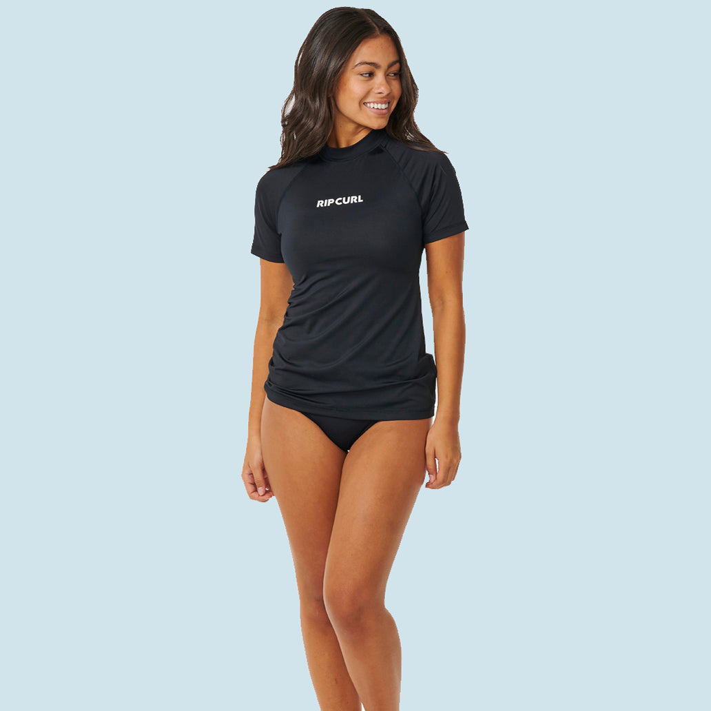 Das Rip Curl Classic Surf S/S Rashguard (black) ist ein schlichtes, kurzärmeliges Damen Lycra mit LSF50+ zum Surfen. Der enge Schnitt schützt vor Hautirritationen und verhindert lästiges Verrutschen beim Surfen.