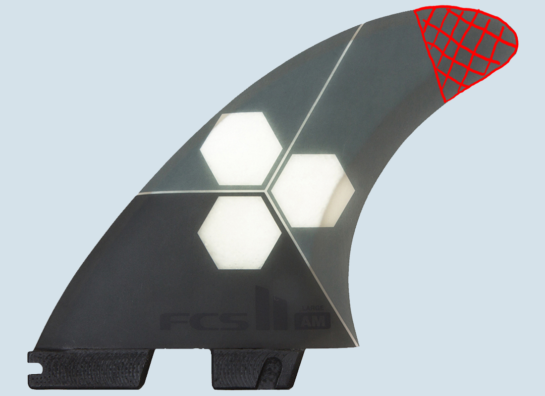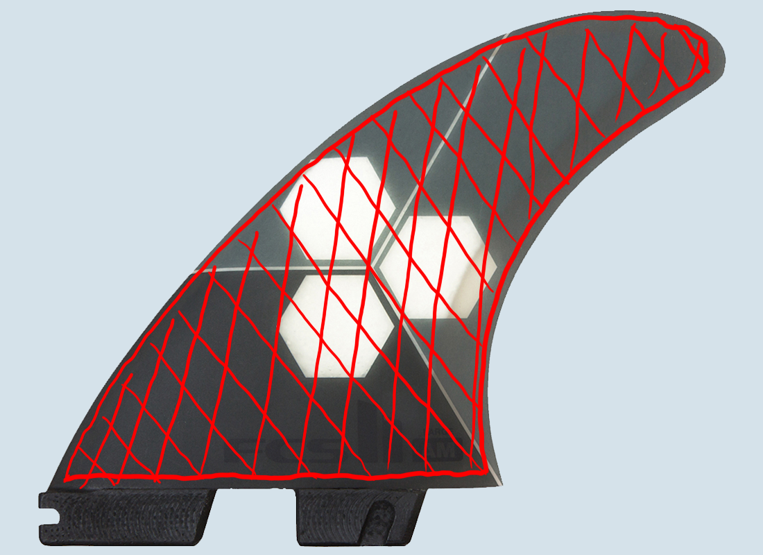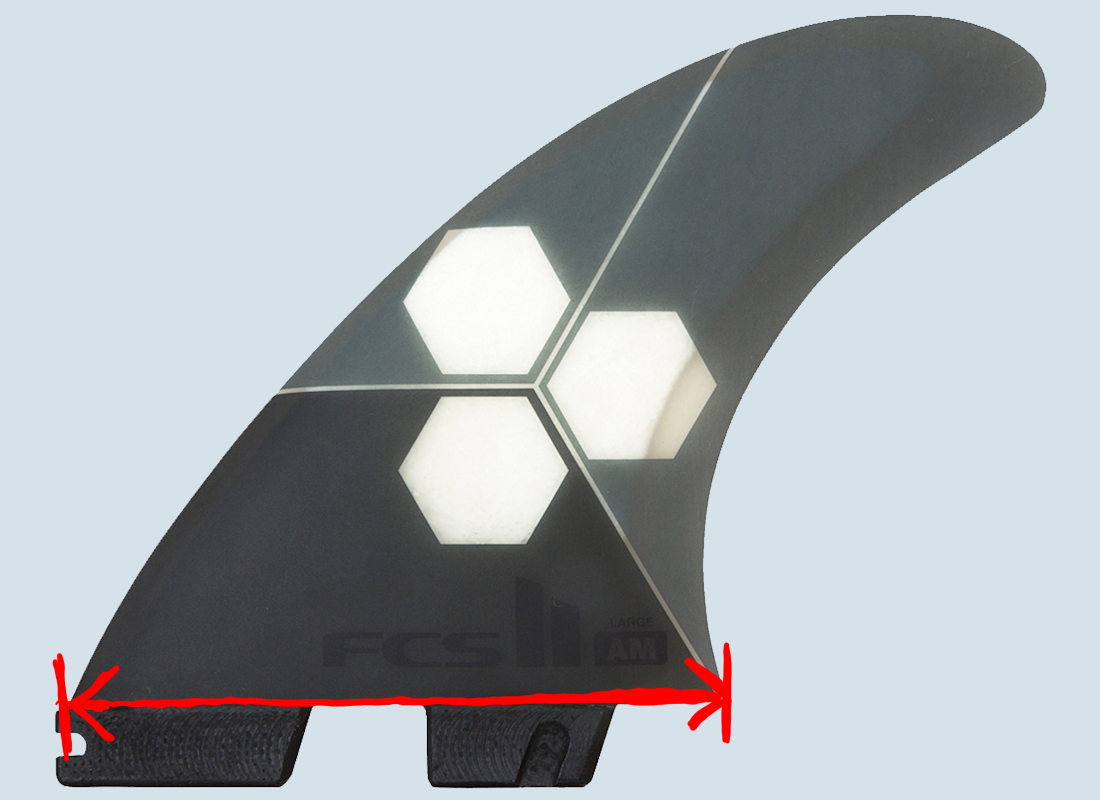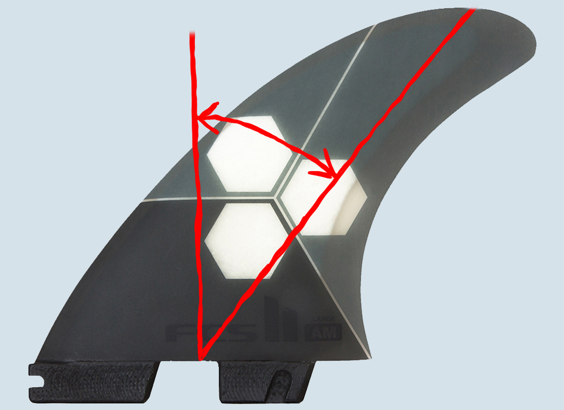 Je breiter die Finne in der Base - also "unten" am Ansatz - ist, desto mehr Drive bringt sie mit.