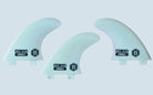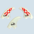Das Buster Thruster Fin Set ist speziell fürs River-/Rapidsurfen entwickelt worden. Das Template ist eine ausgewogene Mischung aus Drive, Hold und Release. Das Tri Fin Set ist aus einem Plastik/Glasfaser-Gemisch produziert. Sie sind etwas steifer, aber vor allem auf stabiler und bruchfester als die günstigeren Eurofin und dabei noch deutlich günstiger als die High End M-3 Finnen von FCS.