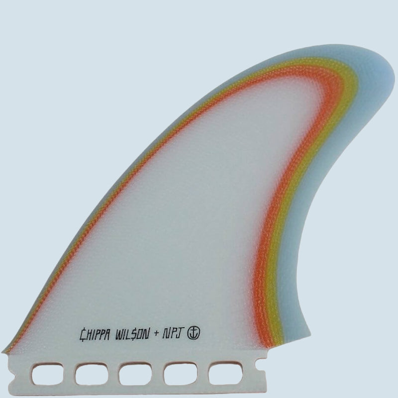 Das Especial Chippa Wilson+NPJ Fin Set besteht aus zwei relativ breiten und aufrechten Twin Fins und einer kleinen Trailerfinne. Im Vergleich zu anderen Twin Fin Sets ist die Chippa Especial Variante sehr drehfreudig mit etwas weniger Drive.