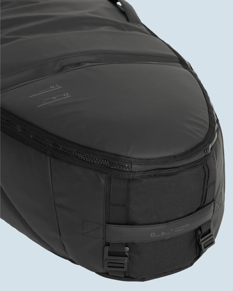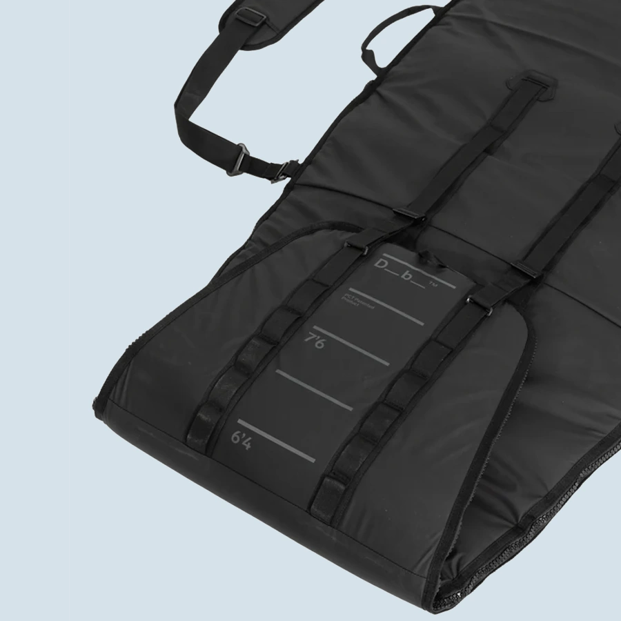 Das Db Surf Day Bag Single Mid Length ist ein hochwertiges Single Board Bag mit Clou. Gleich zwei Features machen diese Surfboard Bag einzigartig: Als erstes längenverstellbares Board Bag der Welt beherbergt es Surfboards von 6'4'' bis 7'6''. Mittels Db’s pfiffigem Length Adjustment System wird das Ende des Boardbags dabei einfach umgeklappt und eingehakt, sodass auch bei kürzeren Boards ein enger Sitz gewährleistet ist. Das funktioniert auch in der Praxis sehr schnell, einfach und zuverlässig.