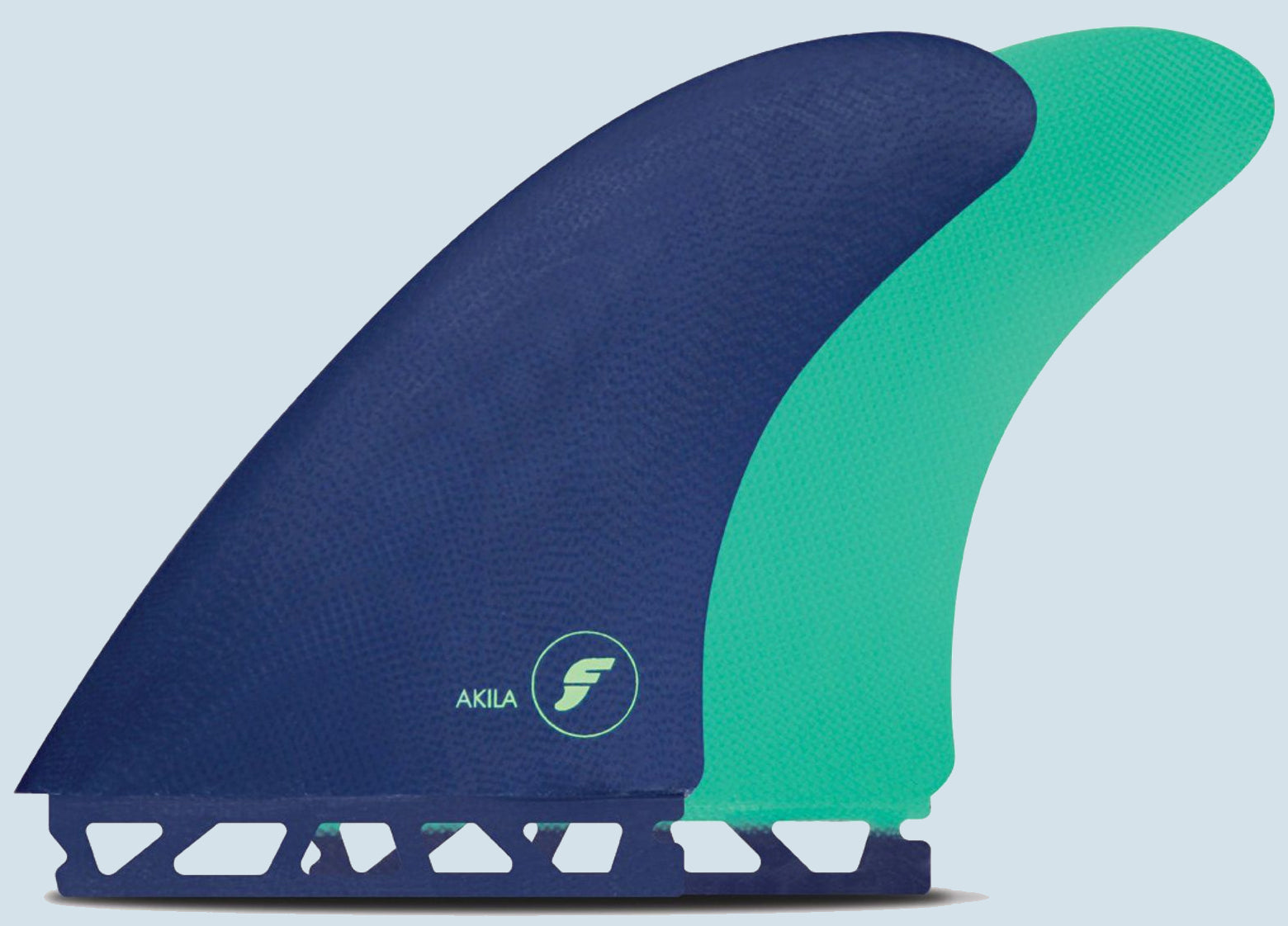 Die größere Mittelfinne ist ein regulärer Stabilizer für mehr Drive. Das Fahrverhalten ust deutlich vorhersehbarer und kontrollierbarer als bei einem reinen Twin Fin Set up. Allerdings opfert man damit auch den meisten Speed, für den Twin Fins bekannt sind. Die kleinere Trailerfinne erinnert an Kelly’s alte Knubster Finne und sorgt für ein deutlich looseres Feeling mit mehr Release in Turns.