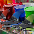 Geglaste Finne mit Schaumkern; eine leichte und steife Bauweise mit einer ausgewogenen Mischung aus Steifheit und Flex, perfekt für ein Allround Finnen Set.