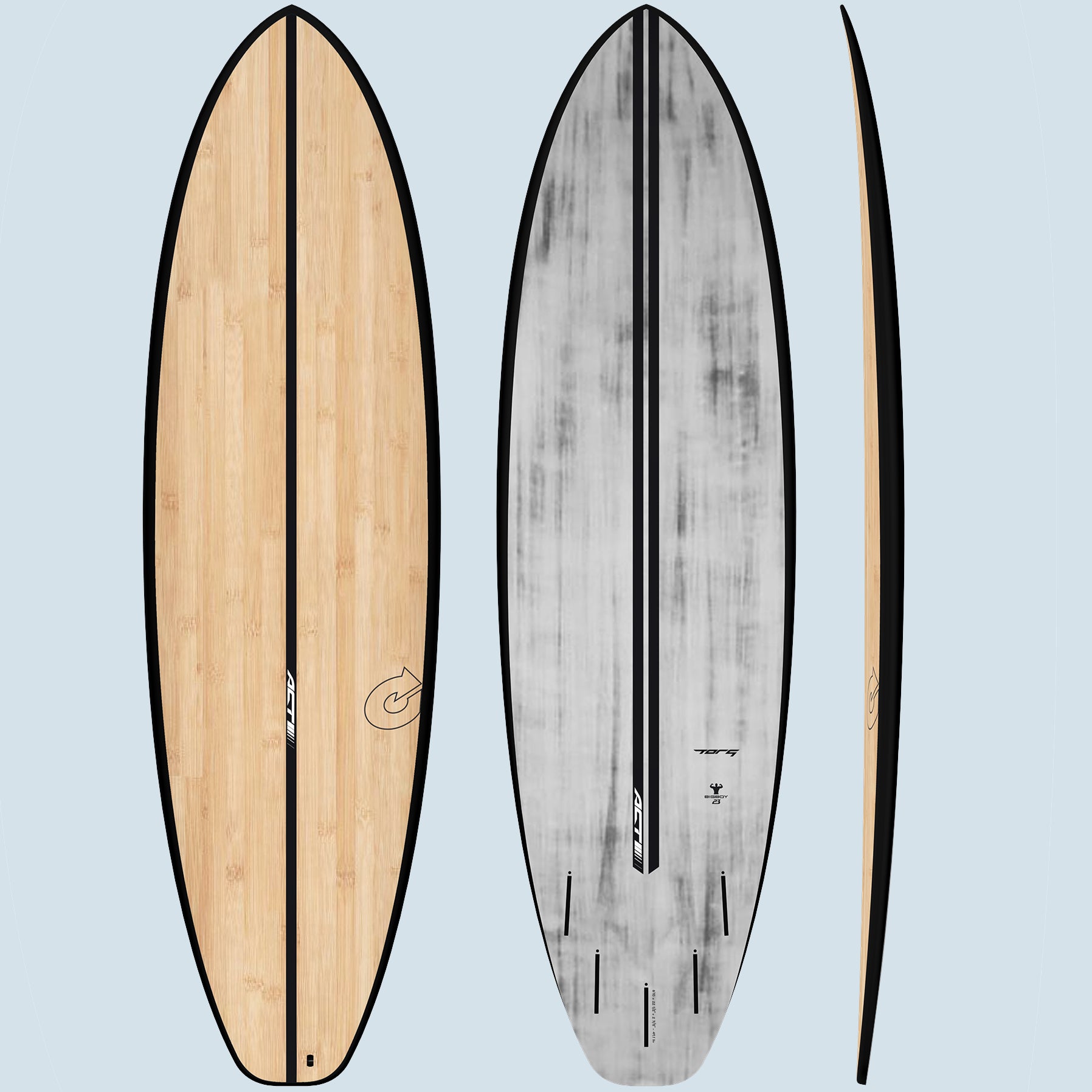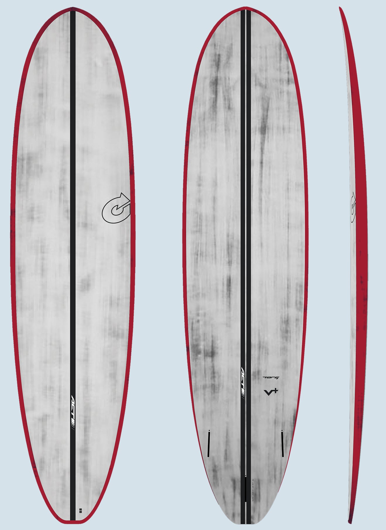 ACT Epoxy - Die robuste und leichteste Epoxy Sandwich Bauweise von Torq. Ein EPS Kern wird oben mit 2x4oz und unten mit 1x6oz Glasfasermatte und Epoxyharz laminiert, mit einem zusätzlichen Railband und einer Bambusmatte im Deck verstärkt und mit einer Kunststoff/Carbon Schicht ummantelt. Zusammen mit der Pre-Preg Technologie, bei der die Glasfasermatten bereits vor dem Auftragen auf den Kern maschinell mit Epoxidharz getränkt werden, ergibt das ein extrem robustes und doch sehr leichtes Surfboard. Wir empfehlen diese Bauweise fortgeschrittenen Surfern mit mittelgroßem Budget, die ein unempfindliches sowie pflegeleichtes Surfboard zum Reisen suchen, das gleichzeitig den Ansprüchen für dynamische Turns genügt. Einsteiger und leicht fortgeschrittene Surfer werden auch mit den günstigeren TET, TET-CX und X-lite Bauweisen auf ihre Kosten kommen.