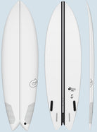 TEC Epoxy - Ein leichter EPS Schaumkern mit Carbon Stringer wird mit Glasfasermatten und Epoxidharz geglast und mit zusätzlichen Carbon Streifen zur Flex Regulierung versehen. Während der Kern etwas leichter ist als ein klassischer PU Kern, der bei Polyesterharz verwendet wird, wird beim Glassing auf mehr Glasfaser Stärke zurückgegriffen, sodass TEC Epoxy Surfboards bei ähnlichem Gewicht und Flex Verhalten etwas robuster als “normale” PU/Polyester Surfboards sind.