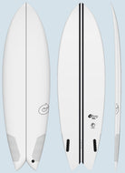 Der Torq TEC Epoxy Fish ist ein klassischer Retro Twin Fin Fish für einfaches Angleiten, maximalen Down the line speed und skatiges Surf Feeling. Der flache Rocker kombiniert mit der Breite und dem hohen Volumen und dem Twin Set up lassen den Fish sehr stark “aufschwimmen”. So wird die Reibung minimiert, was das charakteristisch mühelose Paddeln und Gleiten ermöglicht. Gleichzeitig erfordert es aber auch etwas Geschick und Erfahrung, die Rails richtig zu setzen und das Tail nicht ausbrechen zu lassen. In dieser Beziehung ist der Summer Fish mit Tri Quad Option und etwas schmalerer Outline im Tail für weniger Twin Fin erfahrene SurferInnen etwas leichter zu kontrollieren.