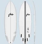 Der Rusty Dwart ist eines der Hybridshapes, die ganz am Anfang des Fish-Shortboard-Hybrid-Trends standen. Im Vergleich zu den meisten aktuell releasten, neueren Shapes ist der Rocker durchgehend ziemlich flach und die Rails etwas voller. Im Unterwasserschiff findet sich ein traditionelles, Shortboard-typisches Single-to-Double-Concave, was maximalen Lift erzeugt. Die Double Winger im Tail fungieren als Wasser Abrisskanten für enge Turns in der Wellenpocket.