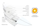 TEC Epoxy - Ein leichter EPS Schaumkern mit Carbon Stringer wird mit Glasfasermatten und Epoxidharz geglast und mit zusätzlichen Carbon Streifen zur Flex Regulierung versehen. Während der Kern etwas leichter ist als ein klassischer PU Kern, der bei Polyesterharz verwendet wird, wird beim Glassing auf mehr Glasfaser Stärke zurückgegriffen, sodass TEC Epoxy Surfboards bei ähnlichem Gewicht und Flex Verhalten etwas robuster als “normale” PU/Polyester Surfboards sind.