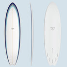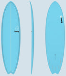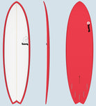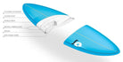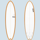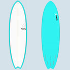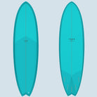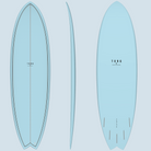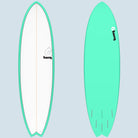 Vom 5'11'' Fish für den Nachwuchs bis hin zum 7'2'' Fish für schwere, erfahrene Surfer bietet die Fish Serie von Torq für jeden Surfer den passenden Fish. “Mod” steht in der Artikelbezeichnung für “mordern” und verdeutlicht die modernen, benutzerfreundlichen Design Elemente: Eine entspannte Rockerlinie kombiniert mit einer breiten Nose führt zu einem fish-typischen leichten Angleiten auch in schwächeren Wellen. Die damit einhergehende gerade Railline in den vorderen zwei Dritteln des Boards erzeugt einen sehr großen Sweet Spot. Das heißt, dass der Mod Fish nicht zu sensibel auf ungewollte Gewichtsverlagerungen und nicht optimale Fuß Positionierung reagiert. Andererseits sind viele moderne Elemente in den Mod Fish integriert, die ihn deutlich einfacher zu drehen und kontrollieren machen als klassische, retro-orientierte Fishes: Neben dem 5-Finnen-Set-up, das einem die Wahl zwischen Quad (vier Finnen für mehr Speed und Drive) und Thruster (drei Finnen für mehr Drehfreude und Kontrolle) gibt, ist hier vor allem das stark ausgedünnte und recht schmale Tail in Kombination mit einem Double-Concave-to-V-Unterwasserschiff für leichtes Initiieren von Turns zu nennen.